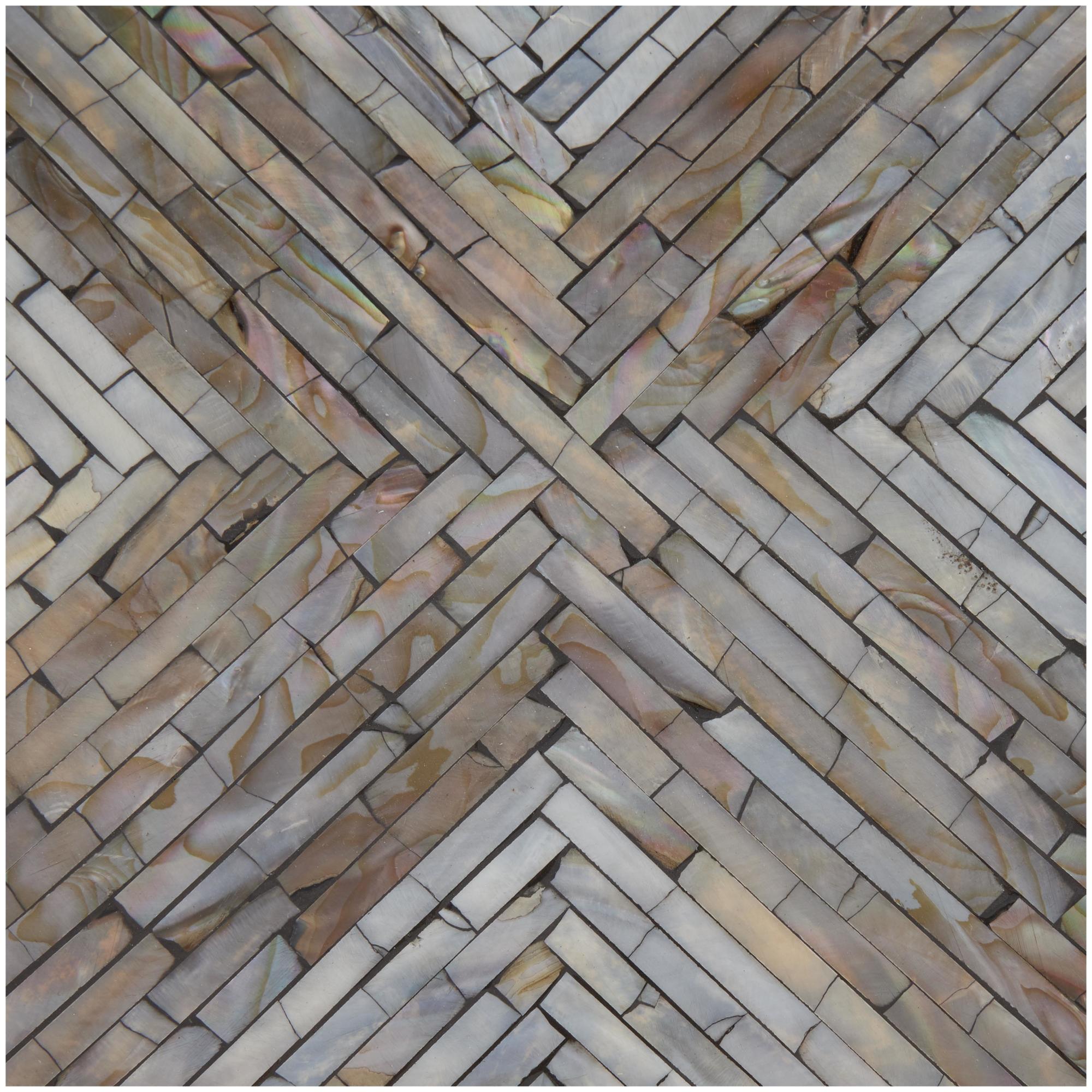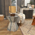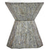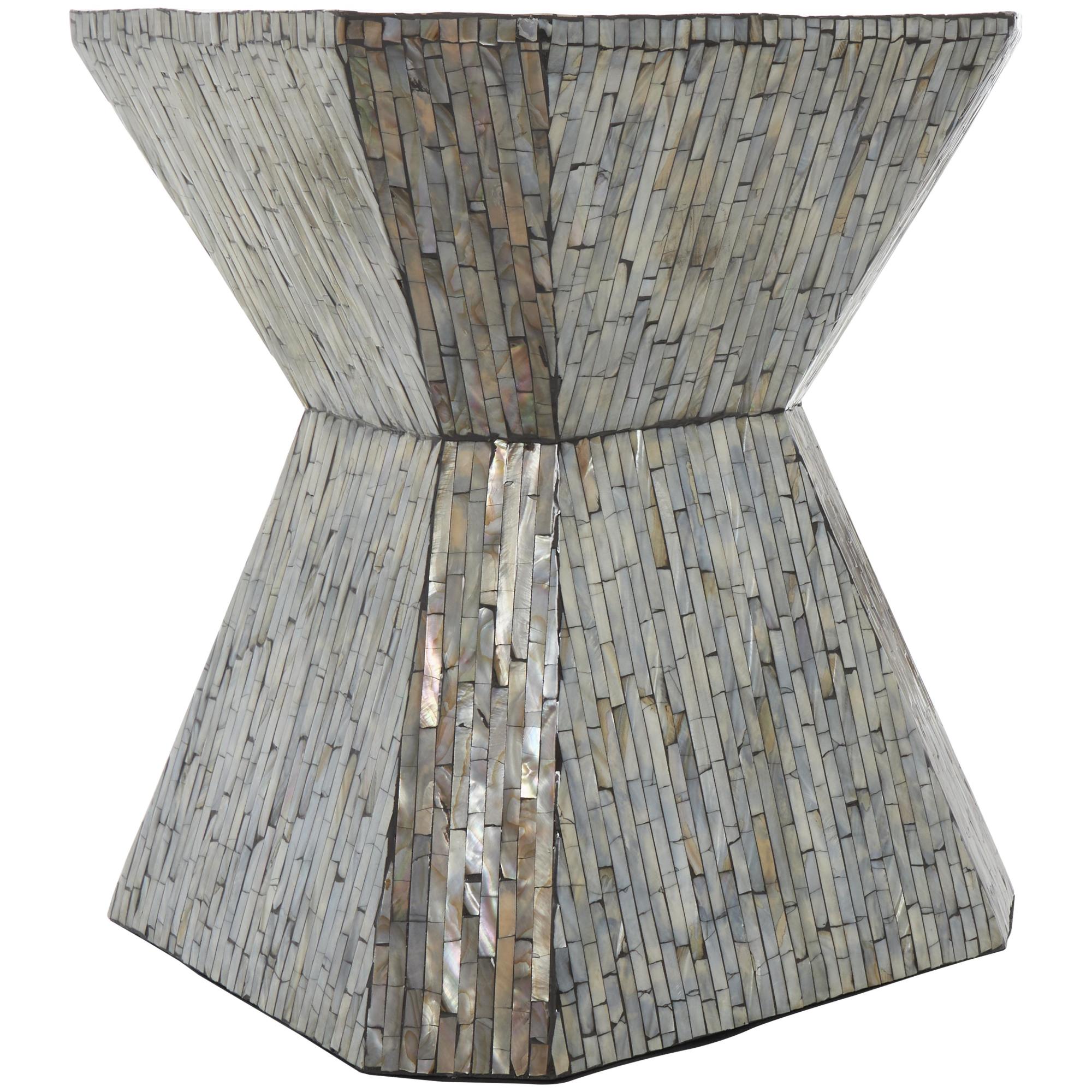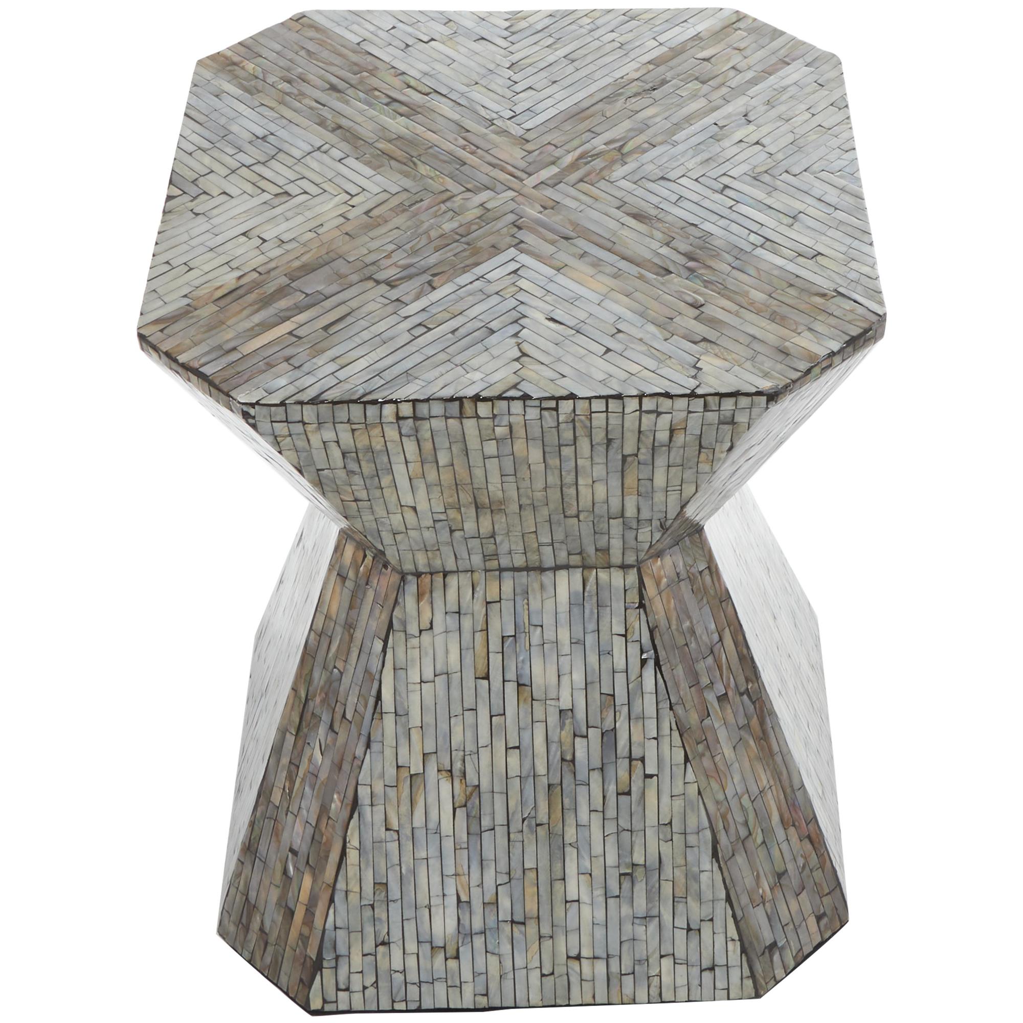 Geometric Gray Mother of Pearl Shell Handmade Hourglass Side End Accent Table with Linear Mosaic Pattern