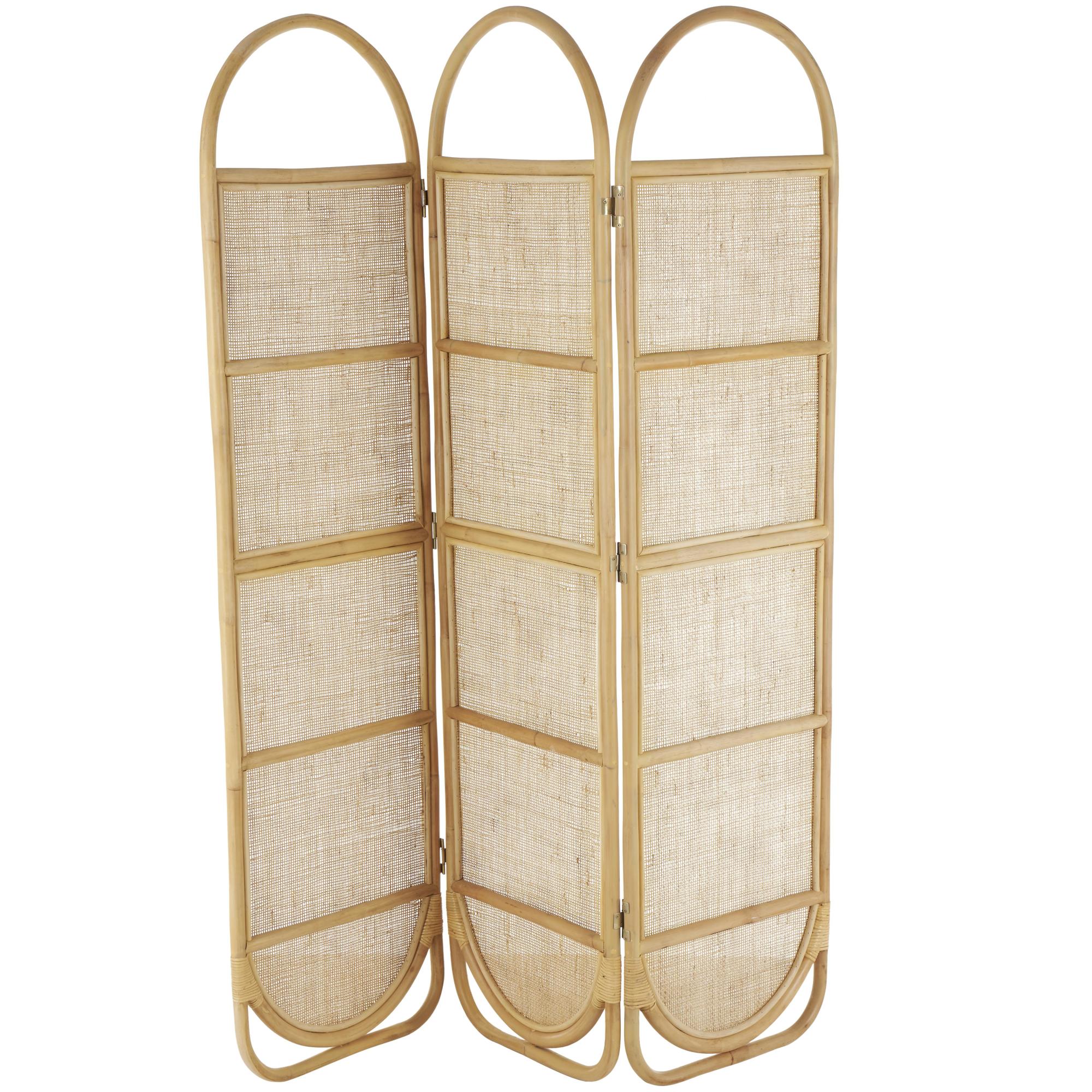 Geometric Light Brown Rattan Woven Arched Oval 3 Panel Partition Room Divider Screen