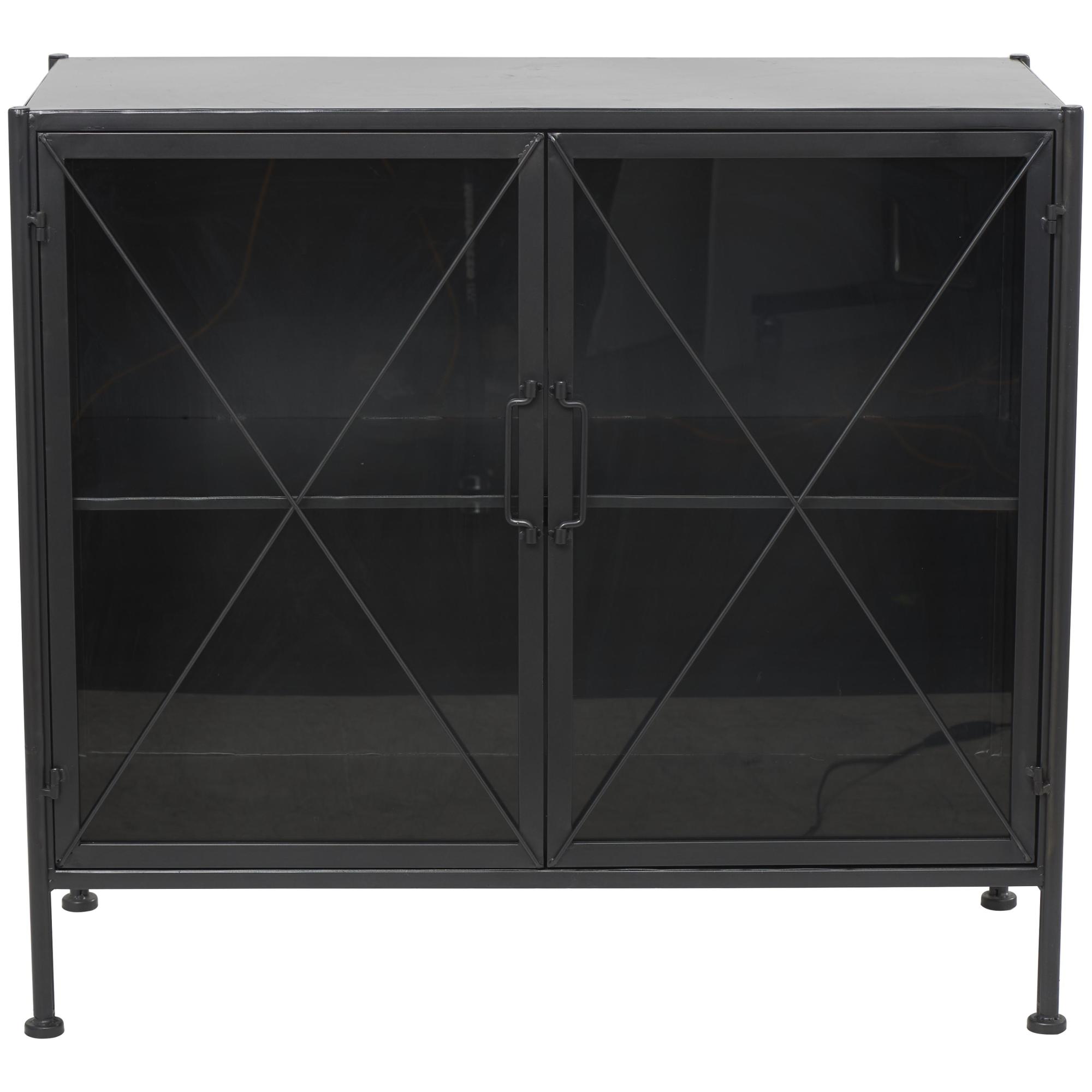 A practical yet stylish upgrade that instantly elevate the look of your room. Maintain a clutter free zone and stay organize with this chic cabinet. This geometric storage cabinet is an ideal choice for introducing a chic element into your living space while adding extra storage. Includes anti-tipping hardware to prevent tipping. This accent furniture features interior space with 31.50”L x 12.50”W x 11.50”H measurements. This item ships in 1 carton. Suitable for indoor use only. This item ships fully assembled in one piece. Maximum weight limit is 100 lbs. This is a single storage cabinet. Iron cabinet features a single shelf. Industrial style.