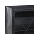 •Matte storage cabinet for room highlights its distinctive rectangular shape with rectangular doors accented by x-shaped metal designs and curved handles