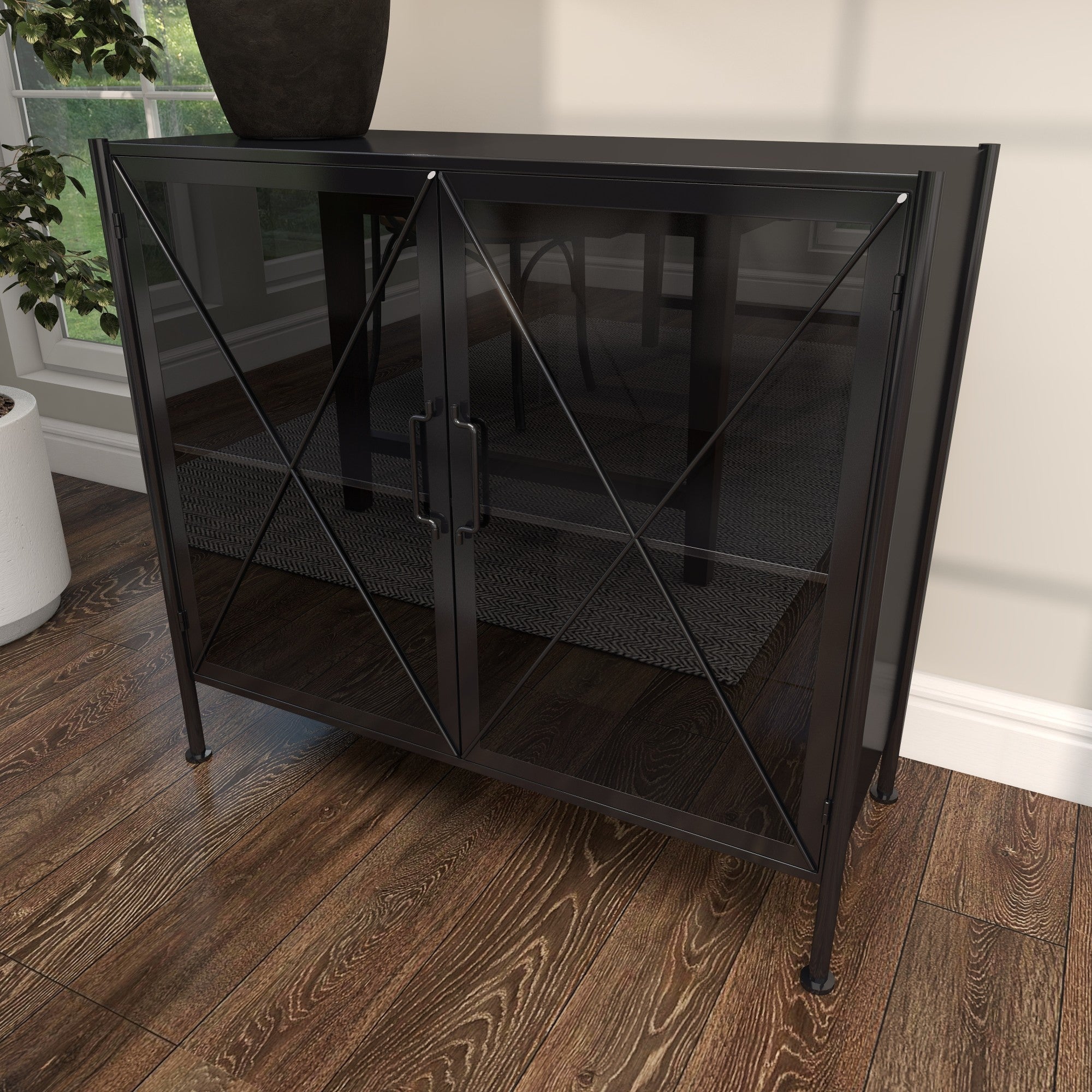 Geometric Metal 1 Shelf and 2 Doors Room Cabinet with Glass Front Panels 33" x 14" x 30"