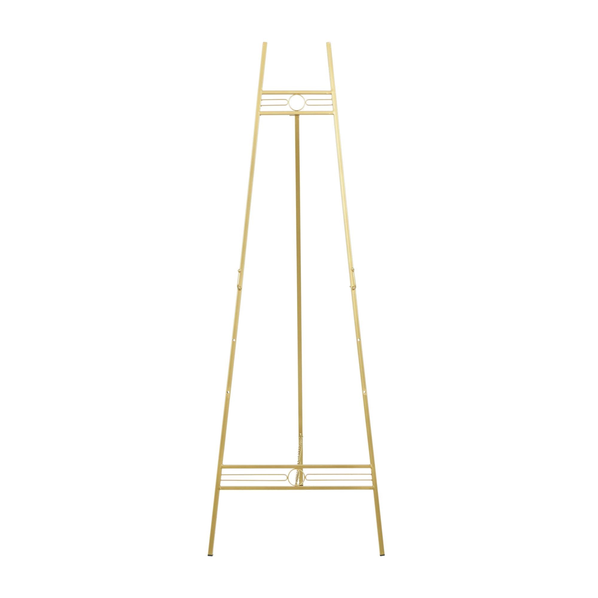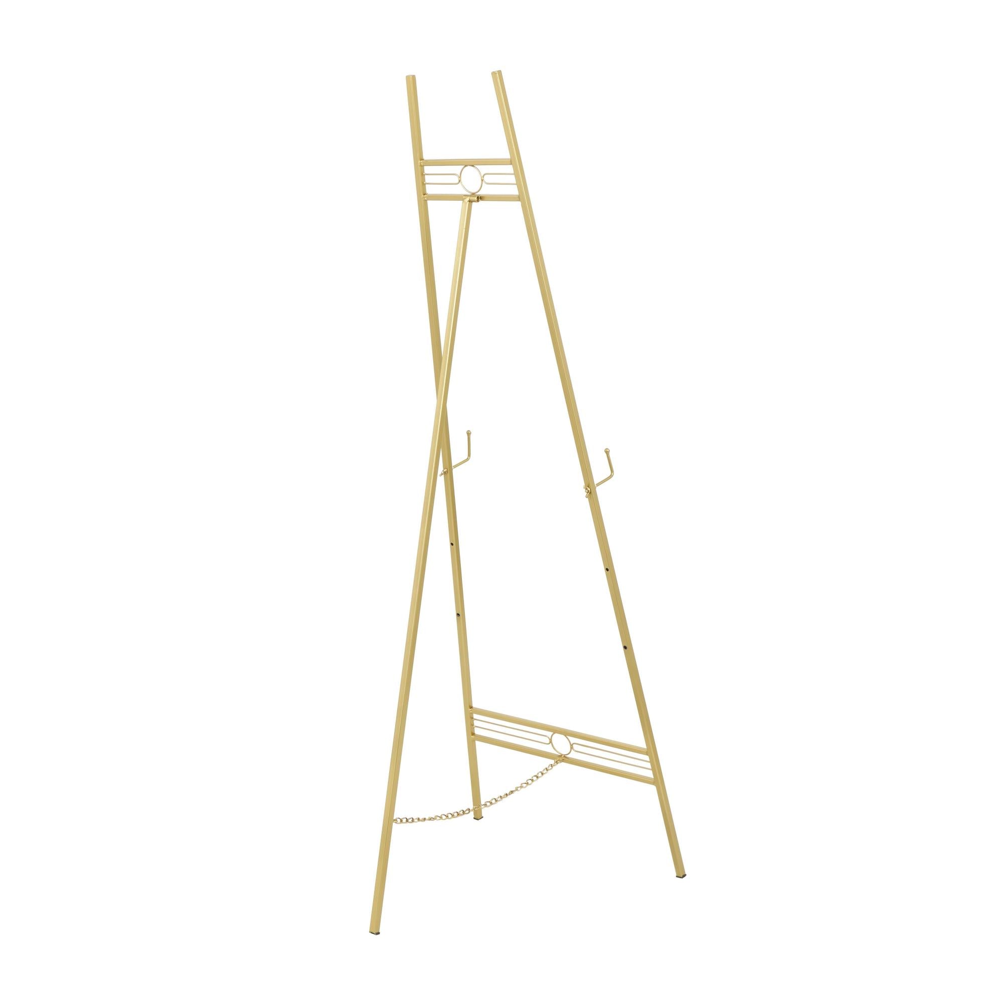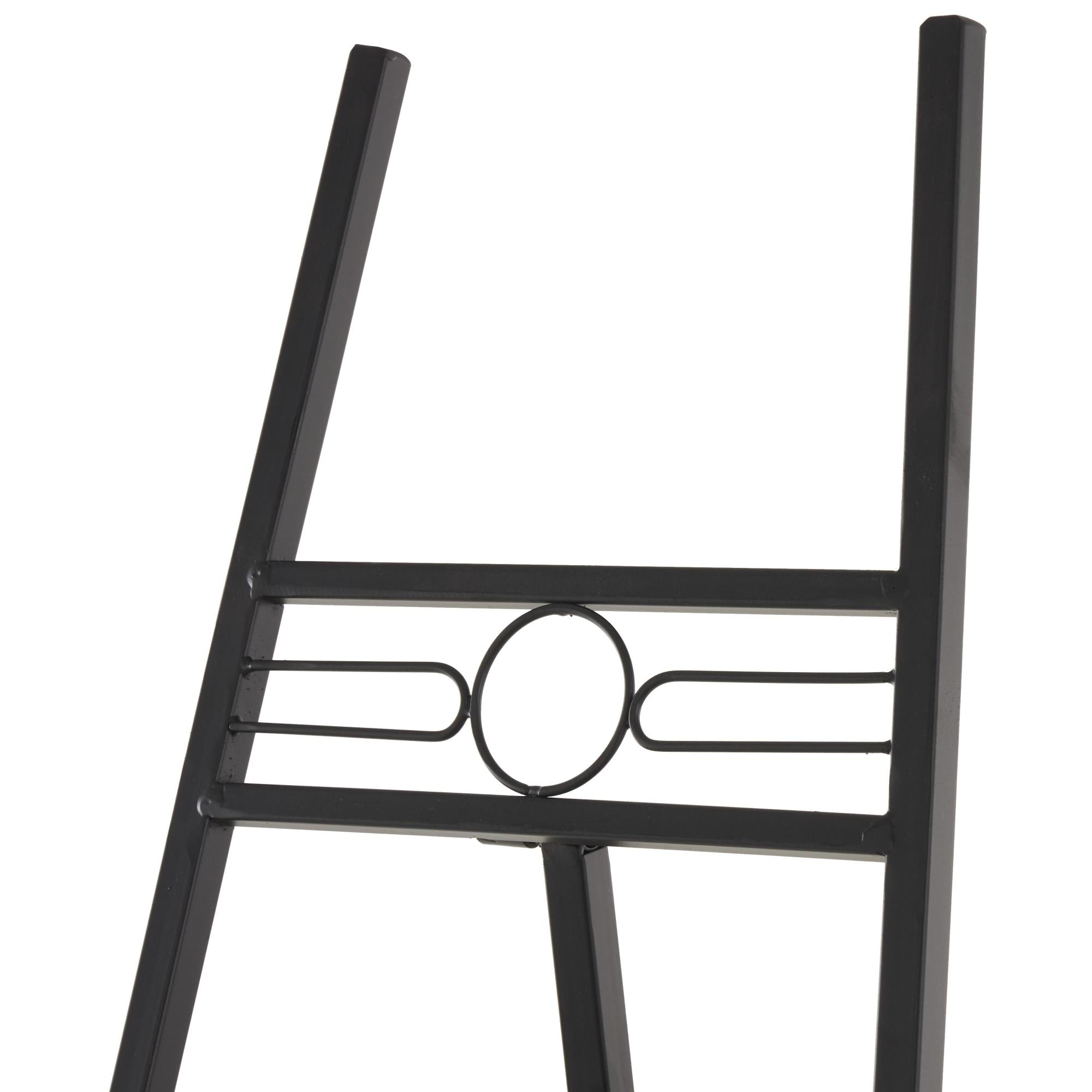 •This metal easel boasts a tripod design for easy storage, with three adjustable height levels for versatile decor displays
