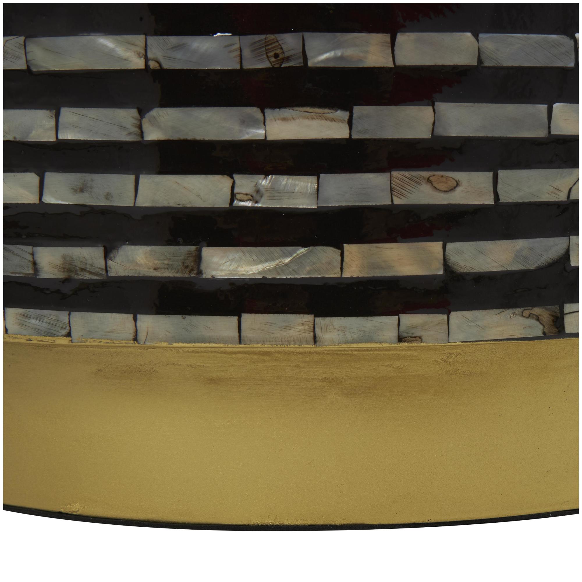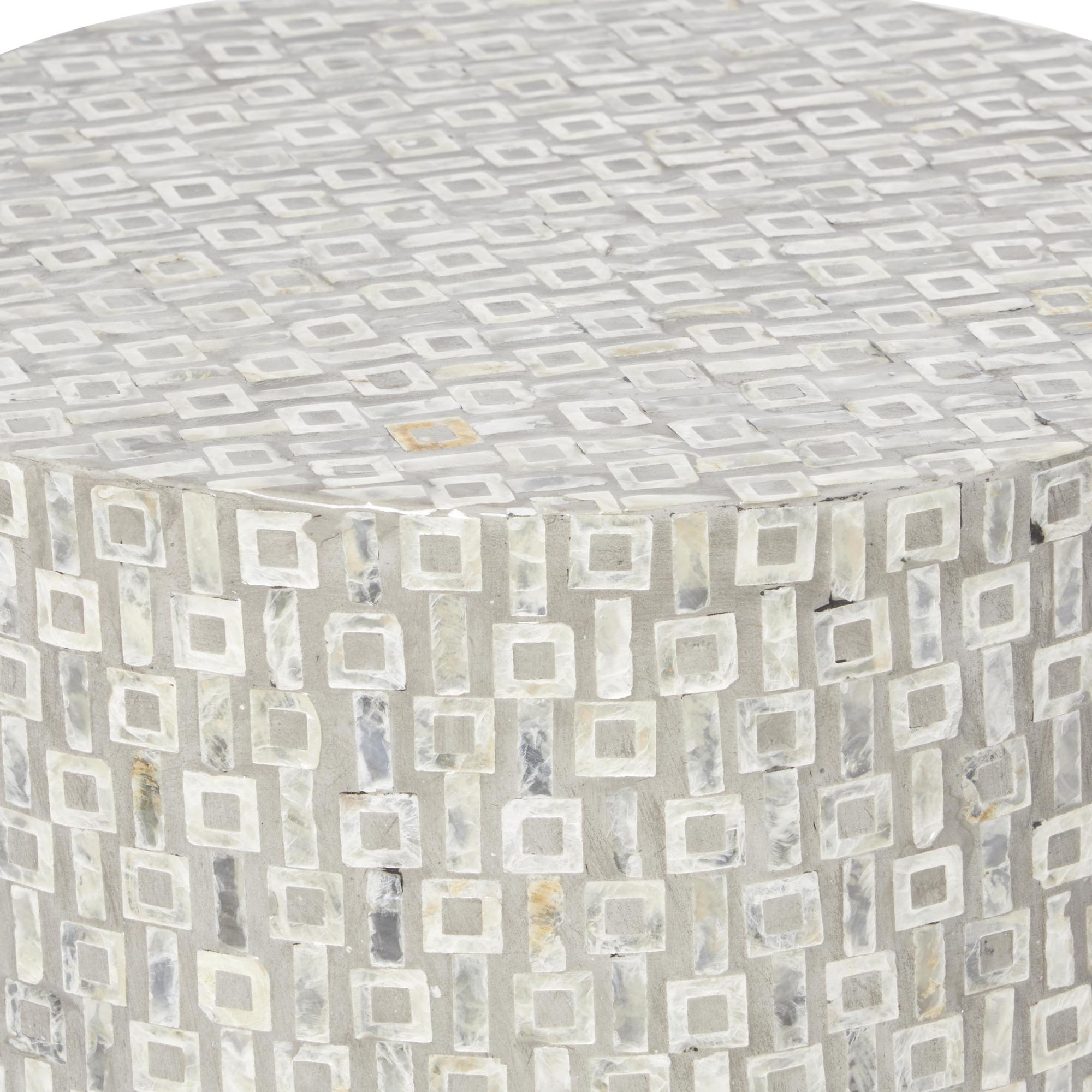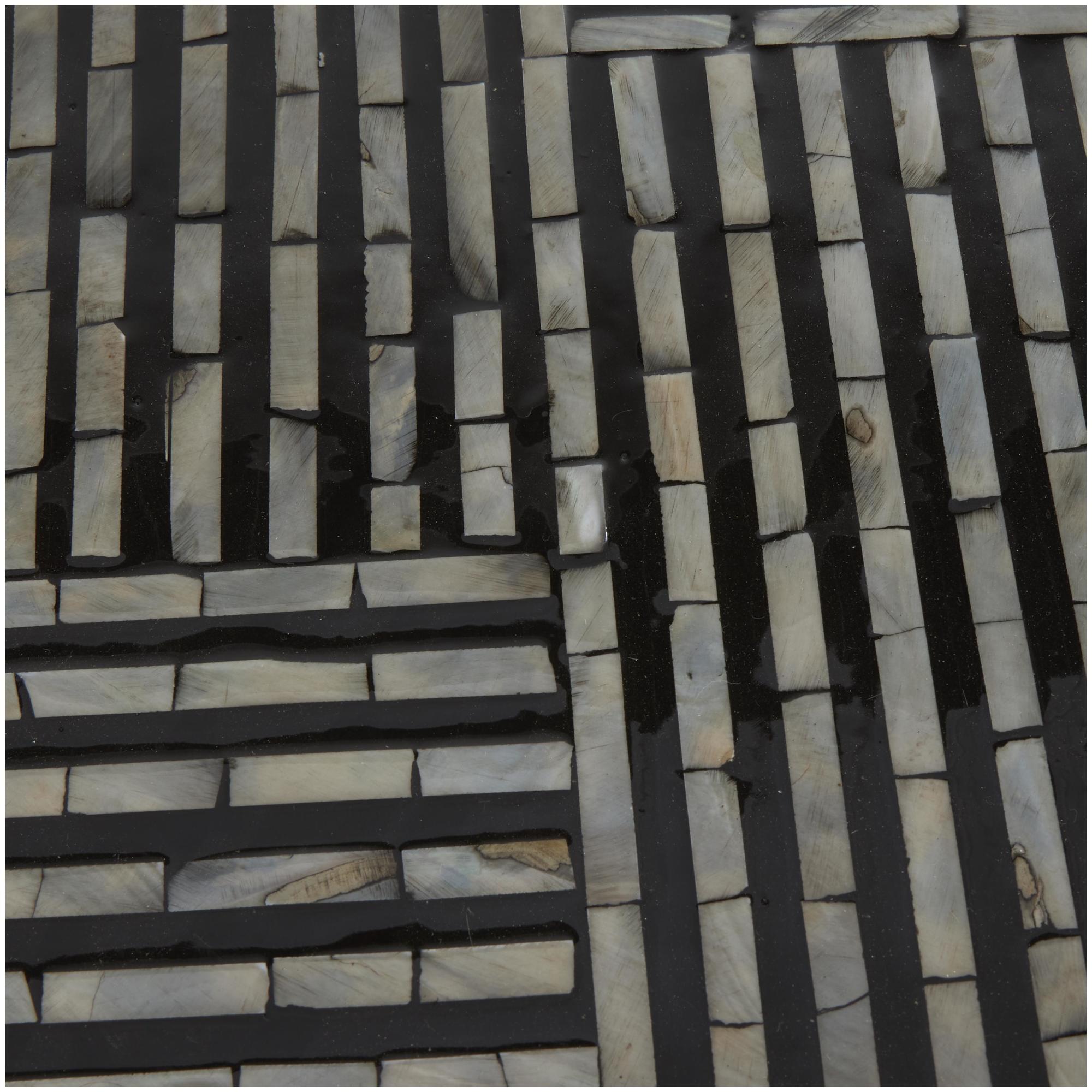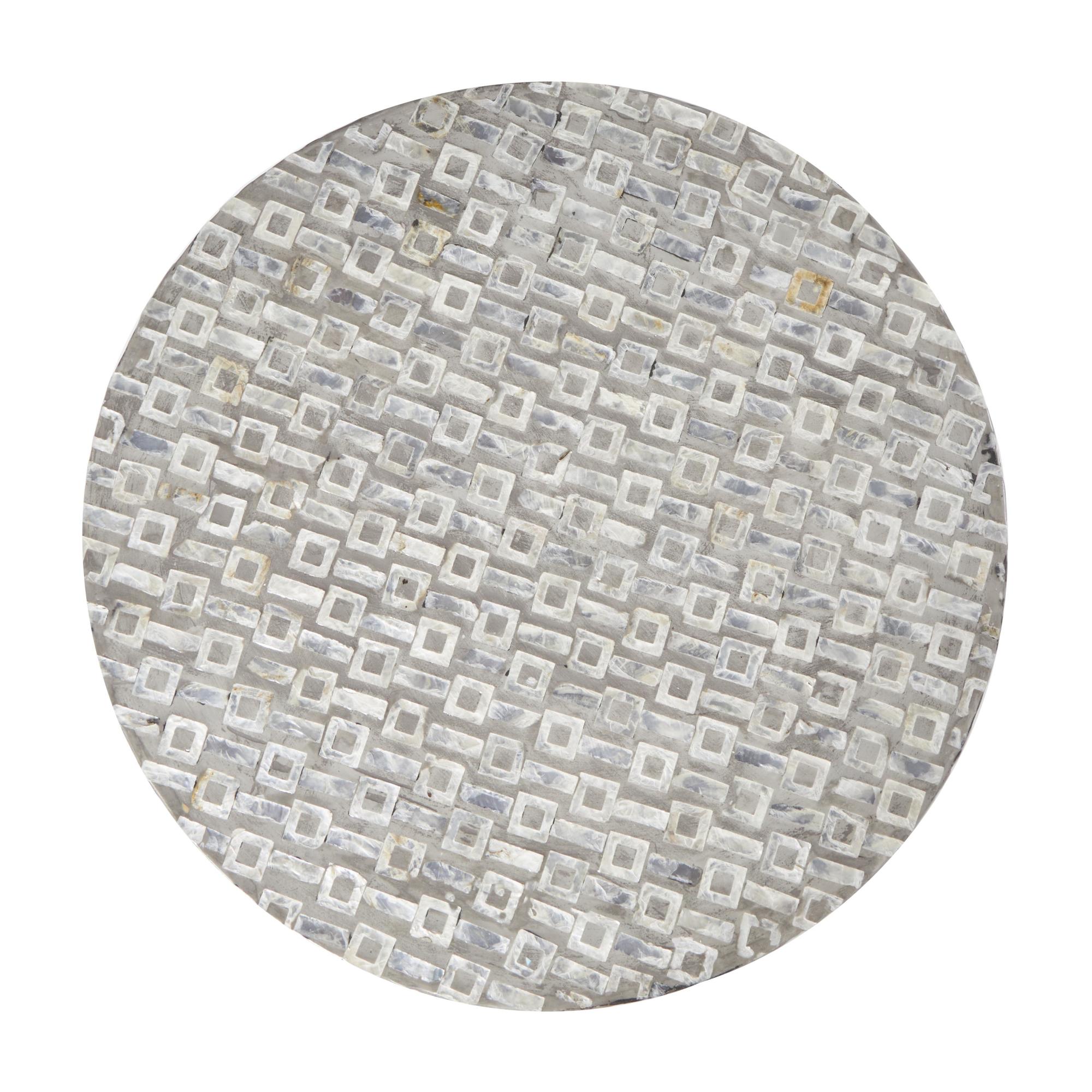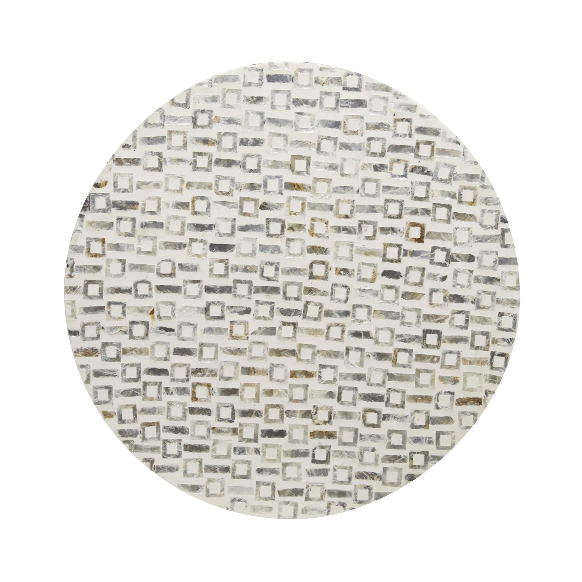 •The mother of pearl accent table features an eye-catching geometric pattern that is beautifully set against its metal base for a striking contrast