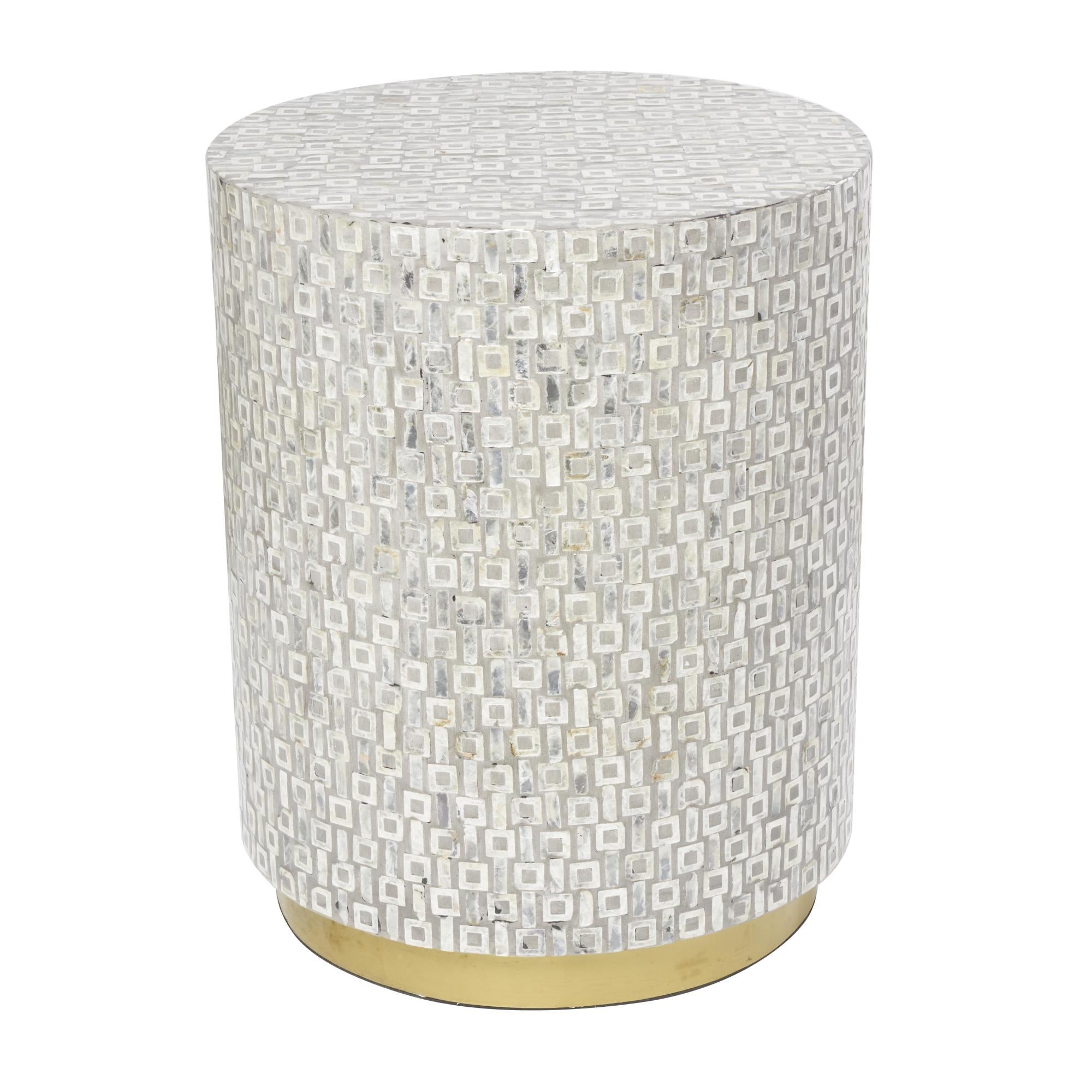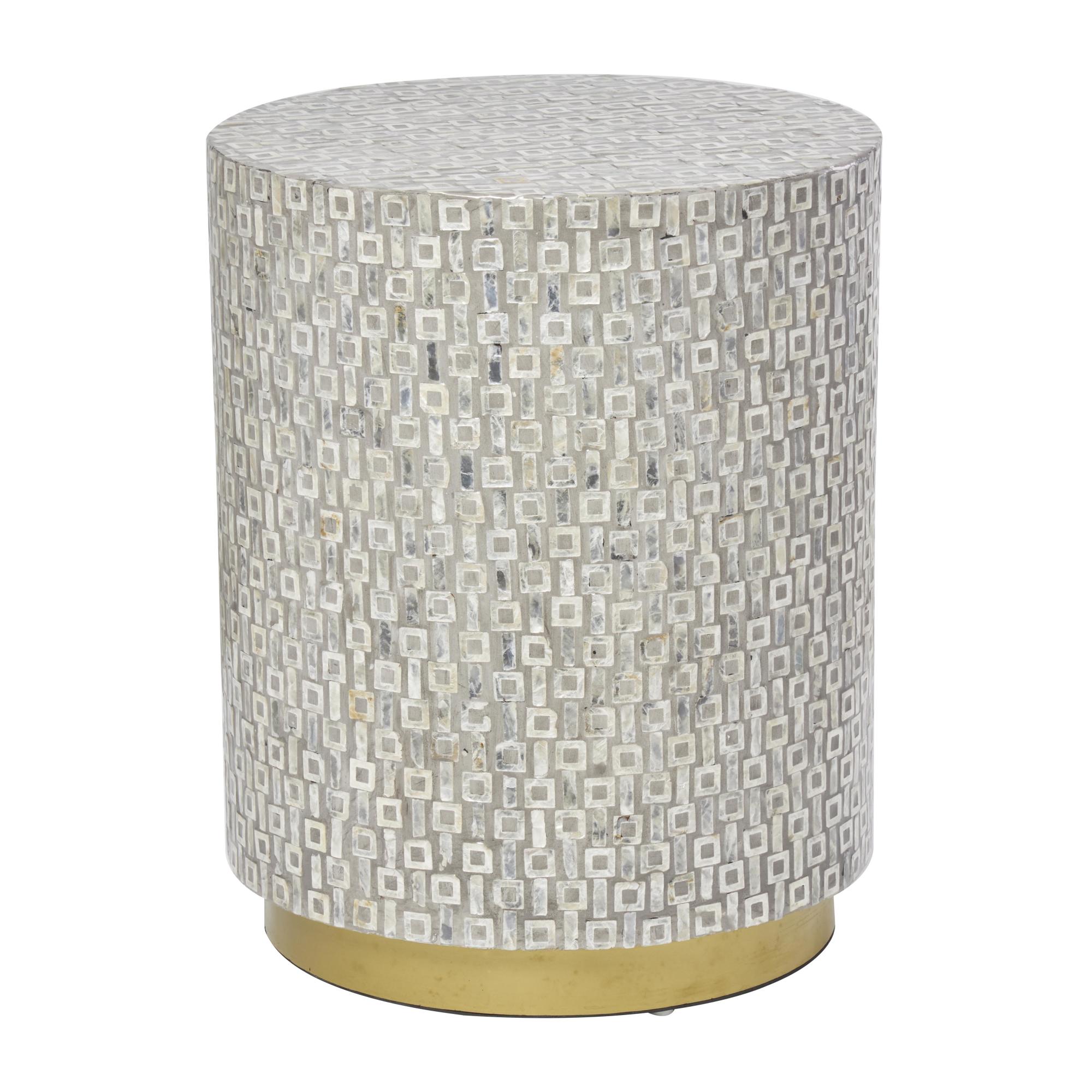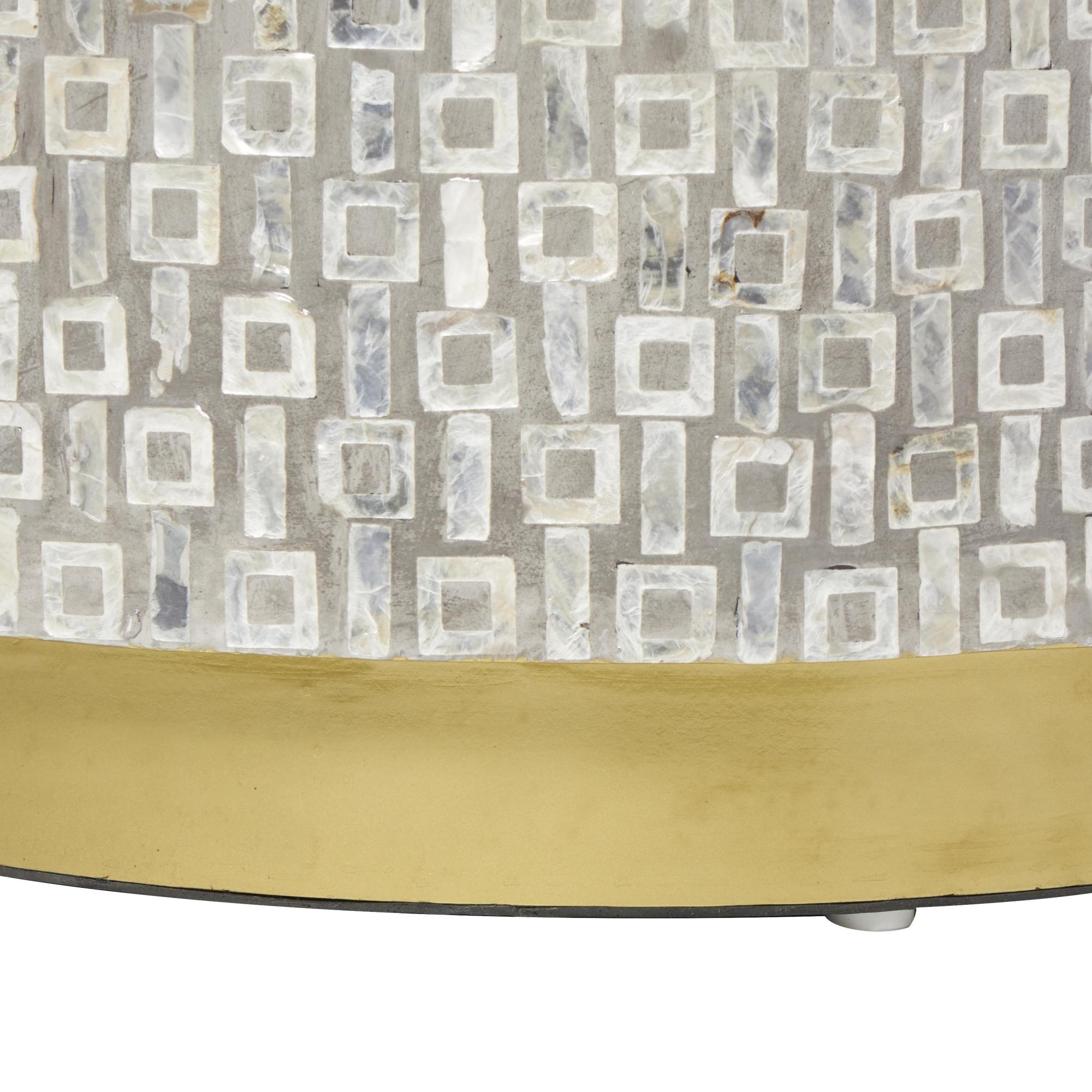 Geometric Mother of Pearl Shell Side End Accent Table with Gold Base