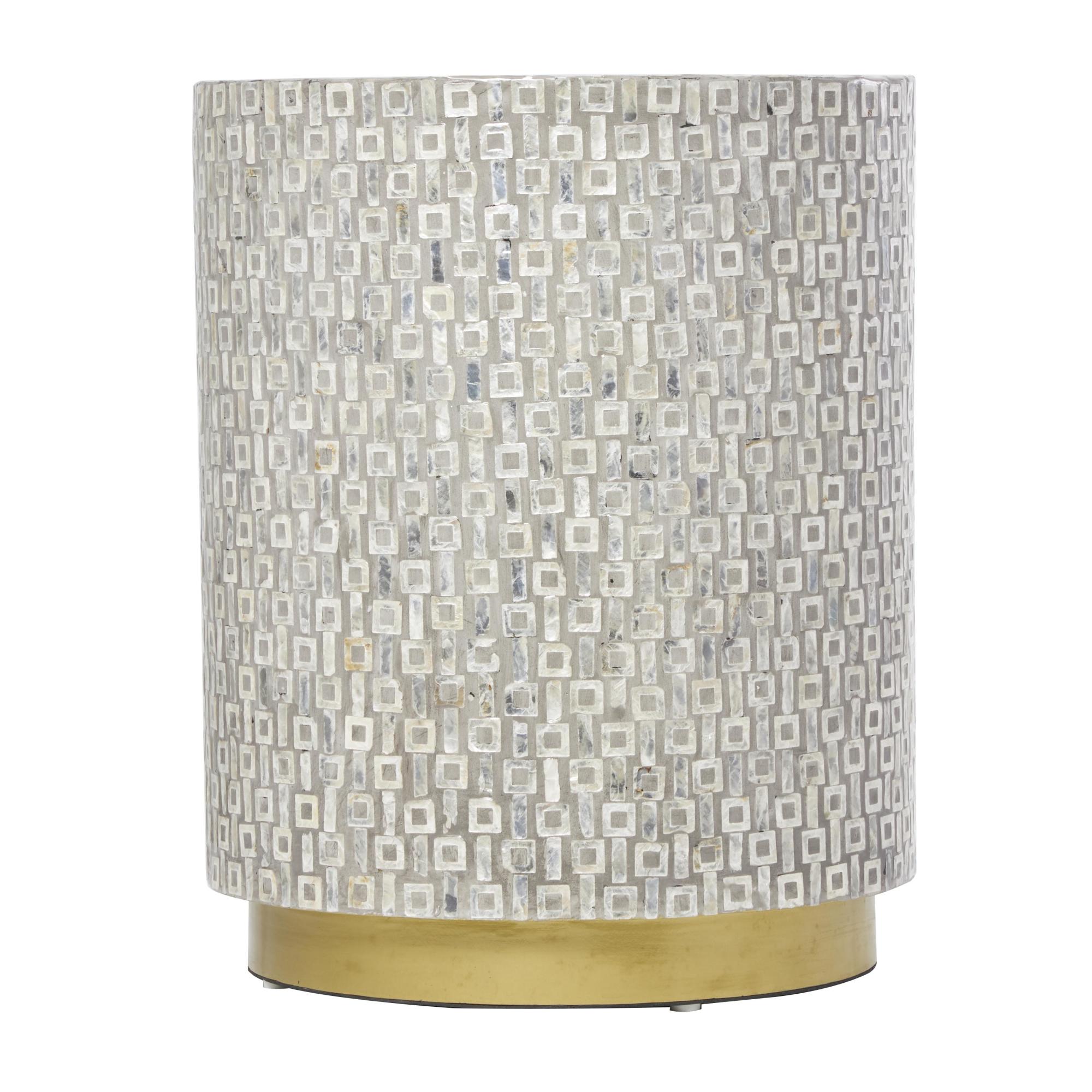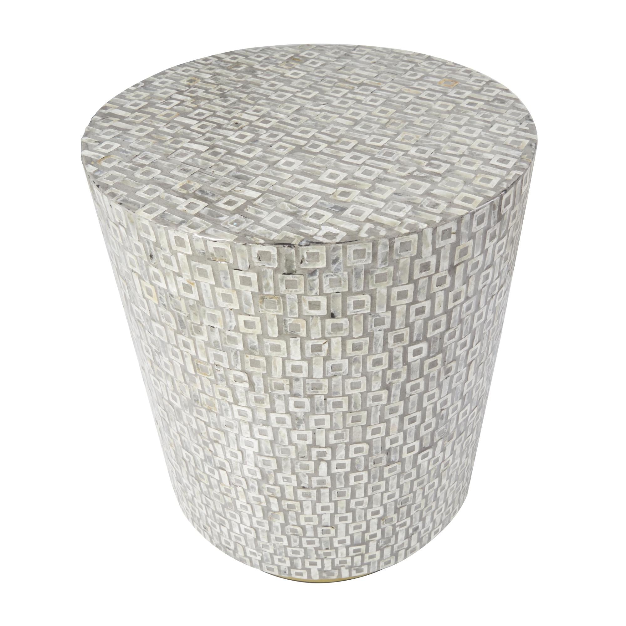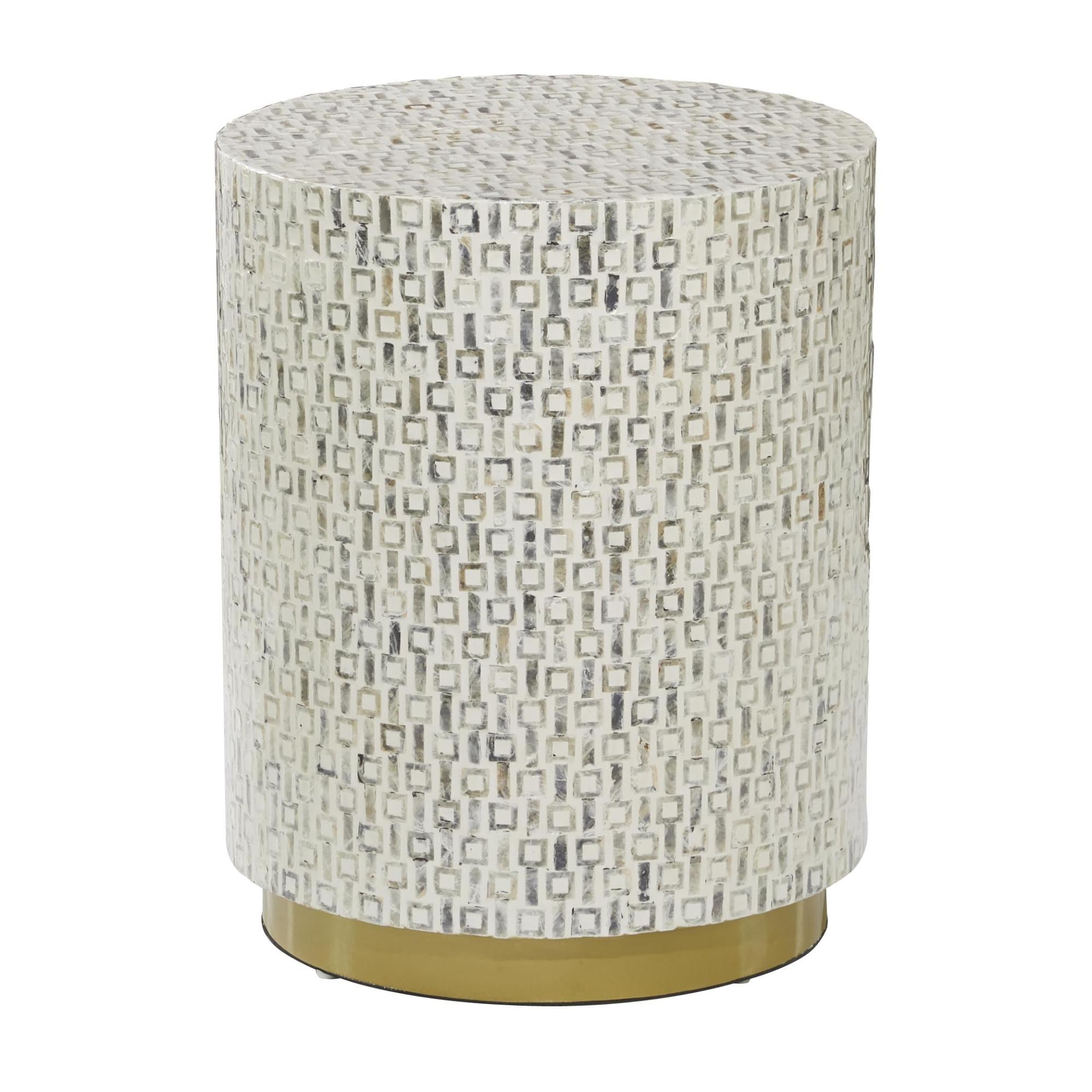 Geometric Mother of Pearl Shell Side End Accent Table with Gold Base