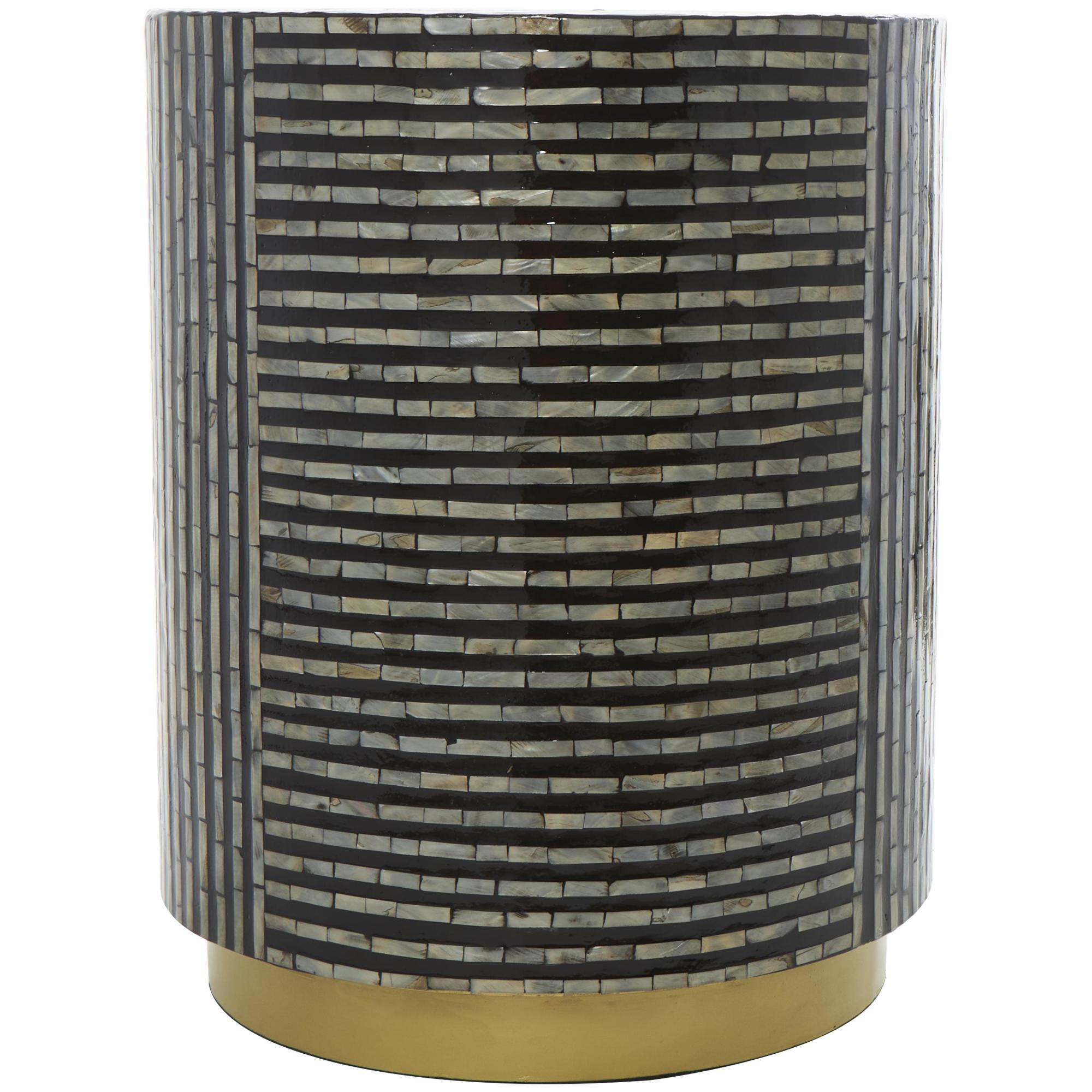 •The side end accent table is crafted from MDF as its core structure, while the overlay is entirely composed of mother of pearl resting atop a sturdy metal base, making it beautiful and durable