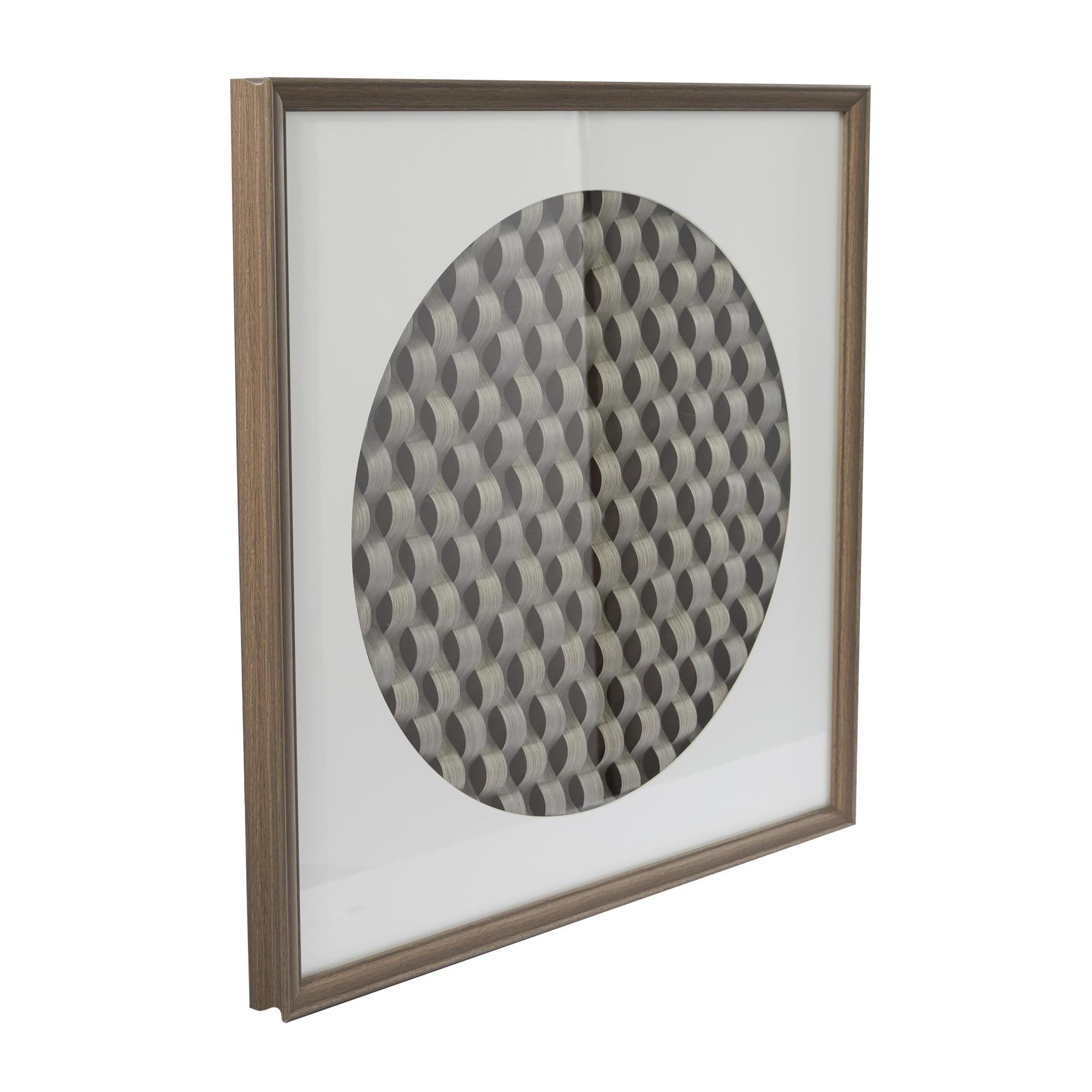 •The oiled wall art set for living room highlights a square framed design with a textured circle woven pattern that adds depth and sophistication