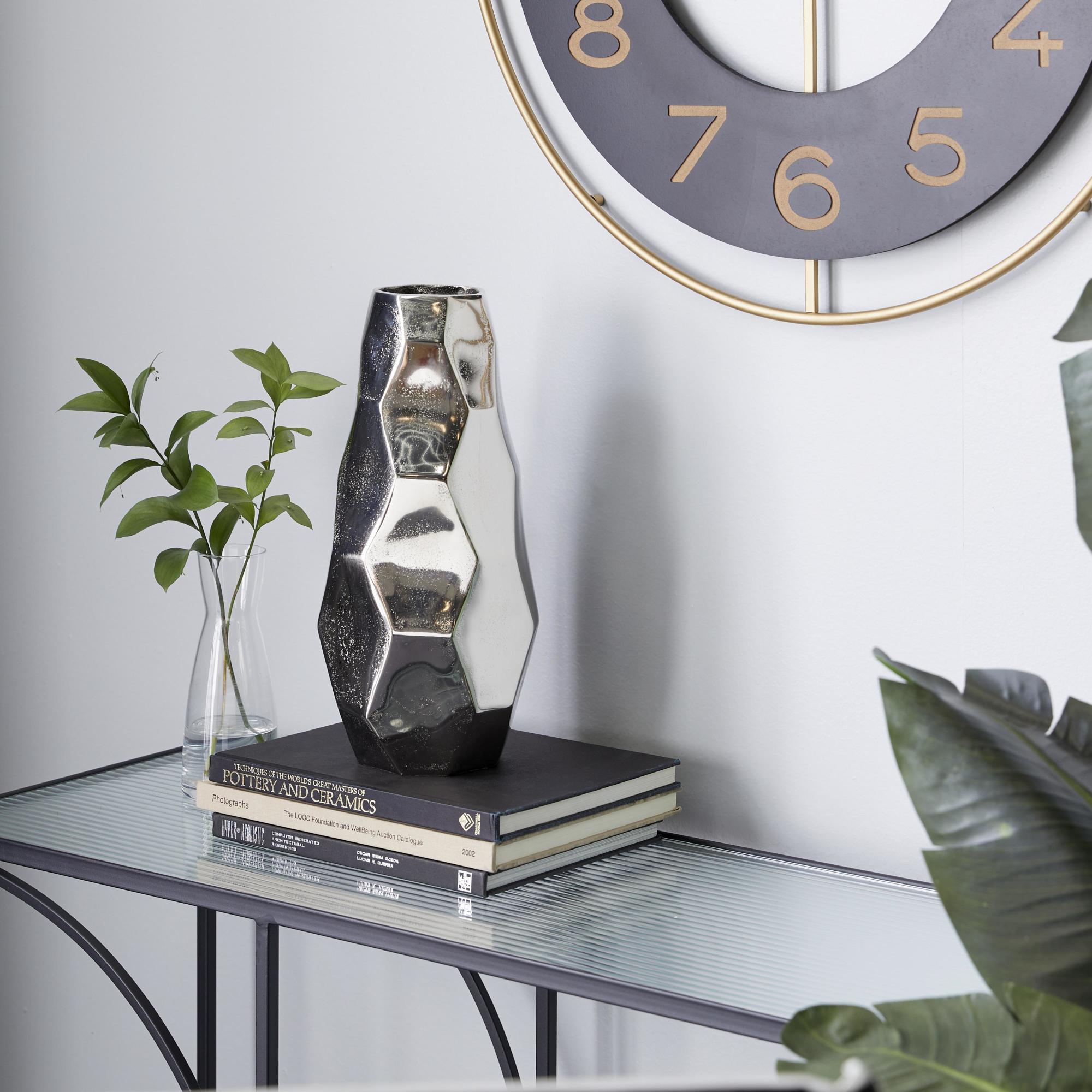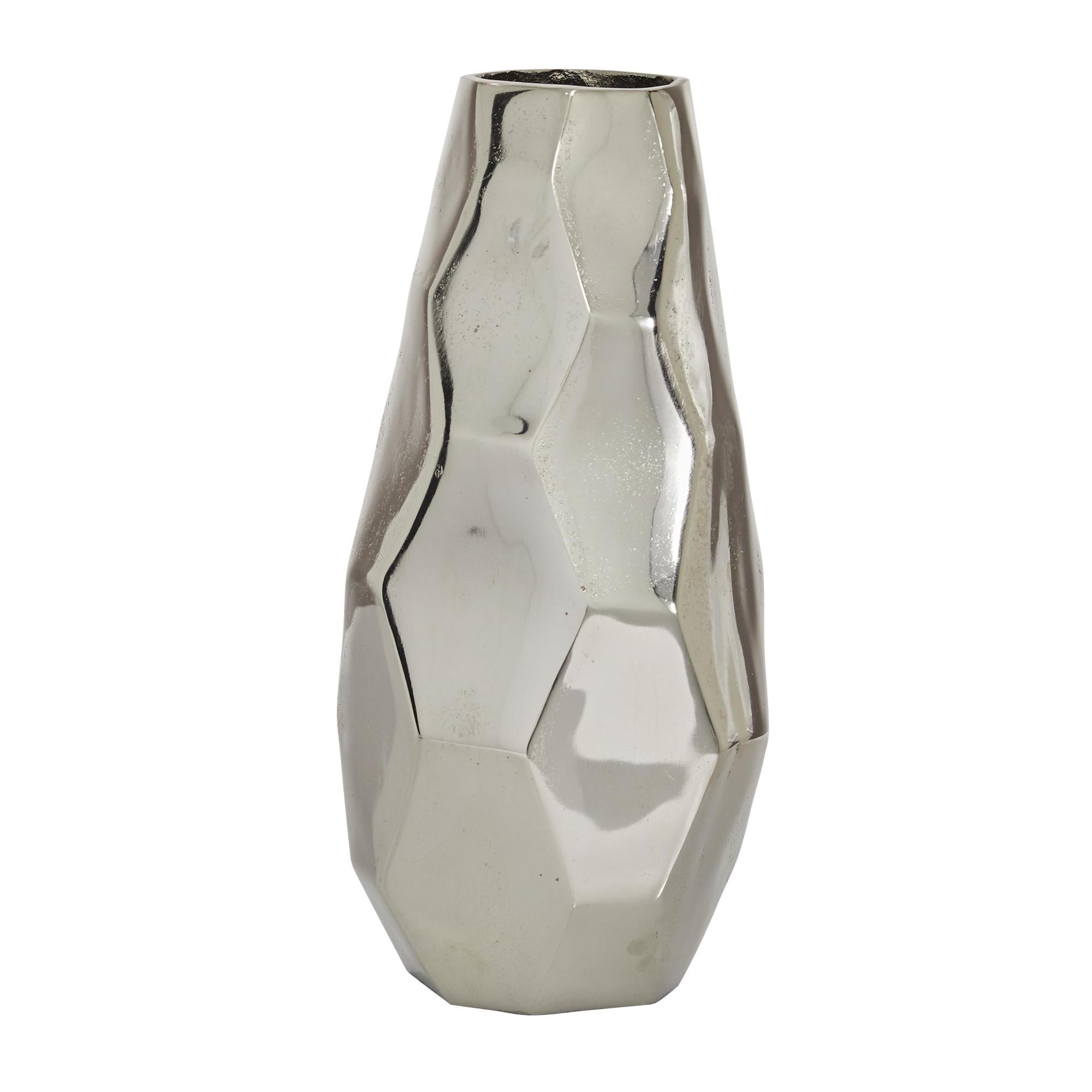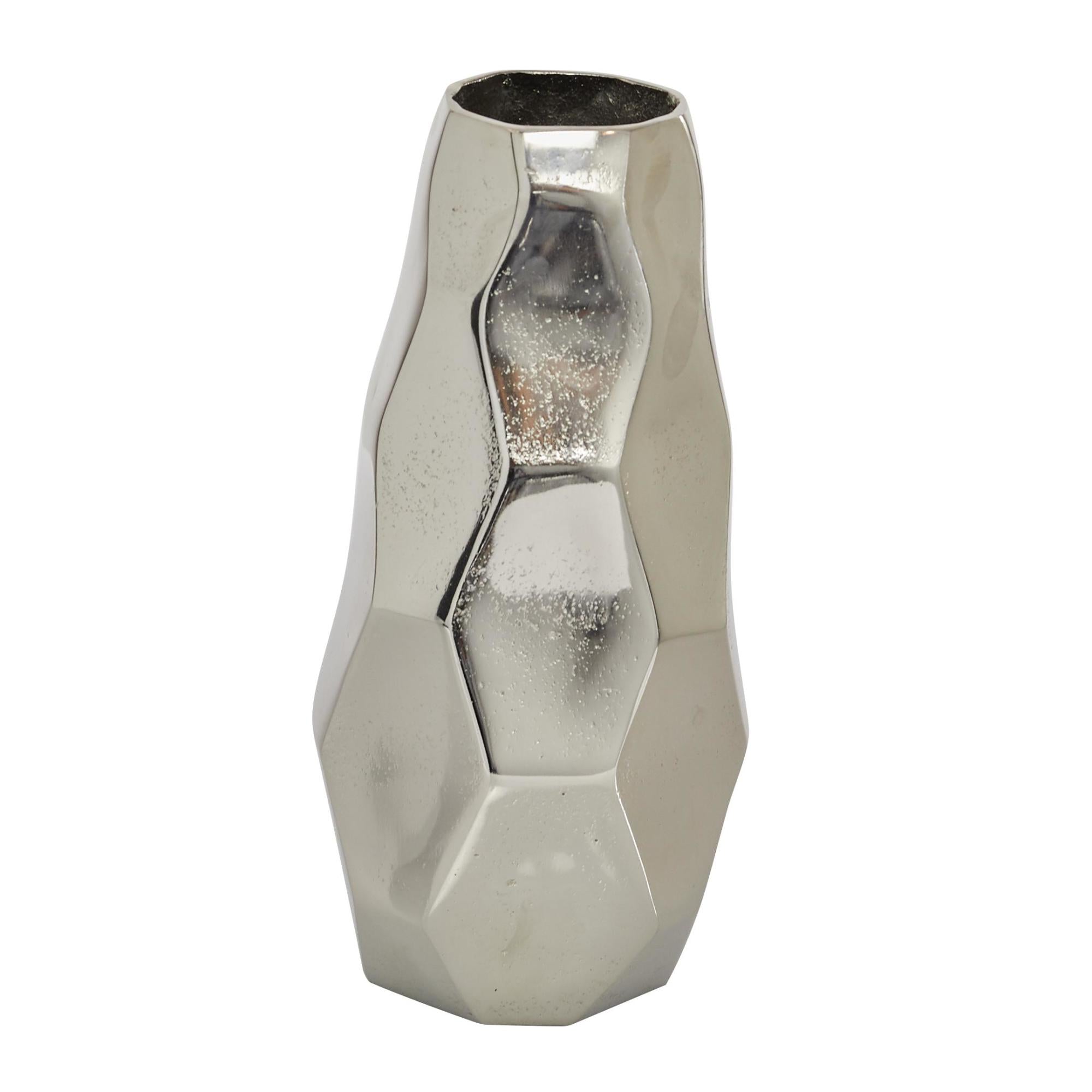 Geometric Silver Aluminum Metal Decorative Vase