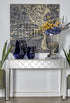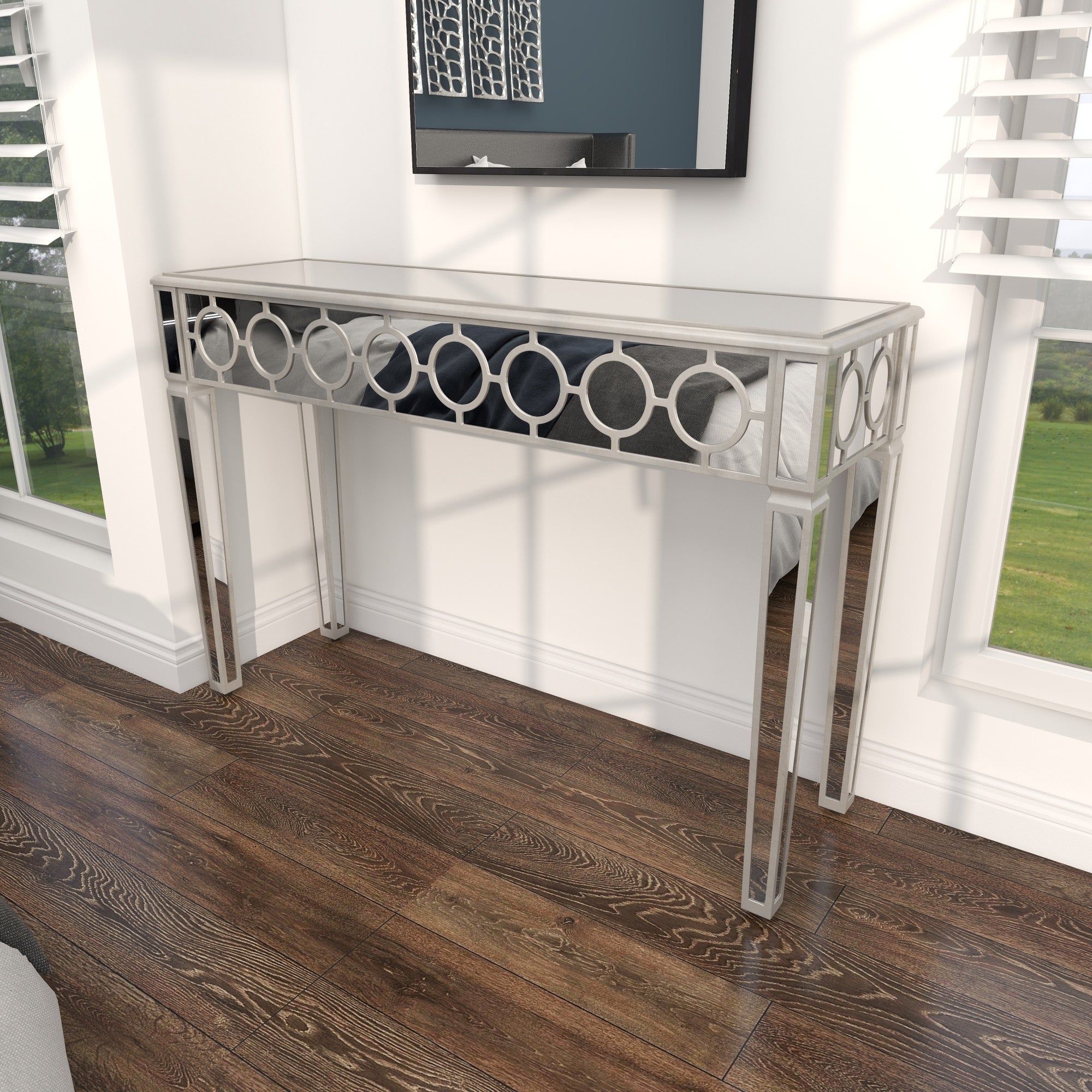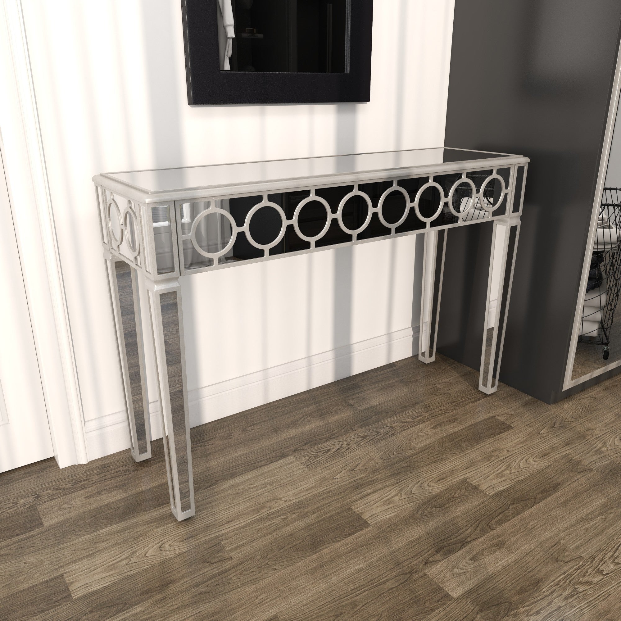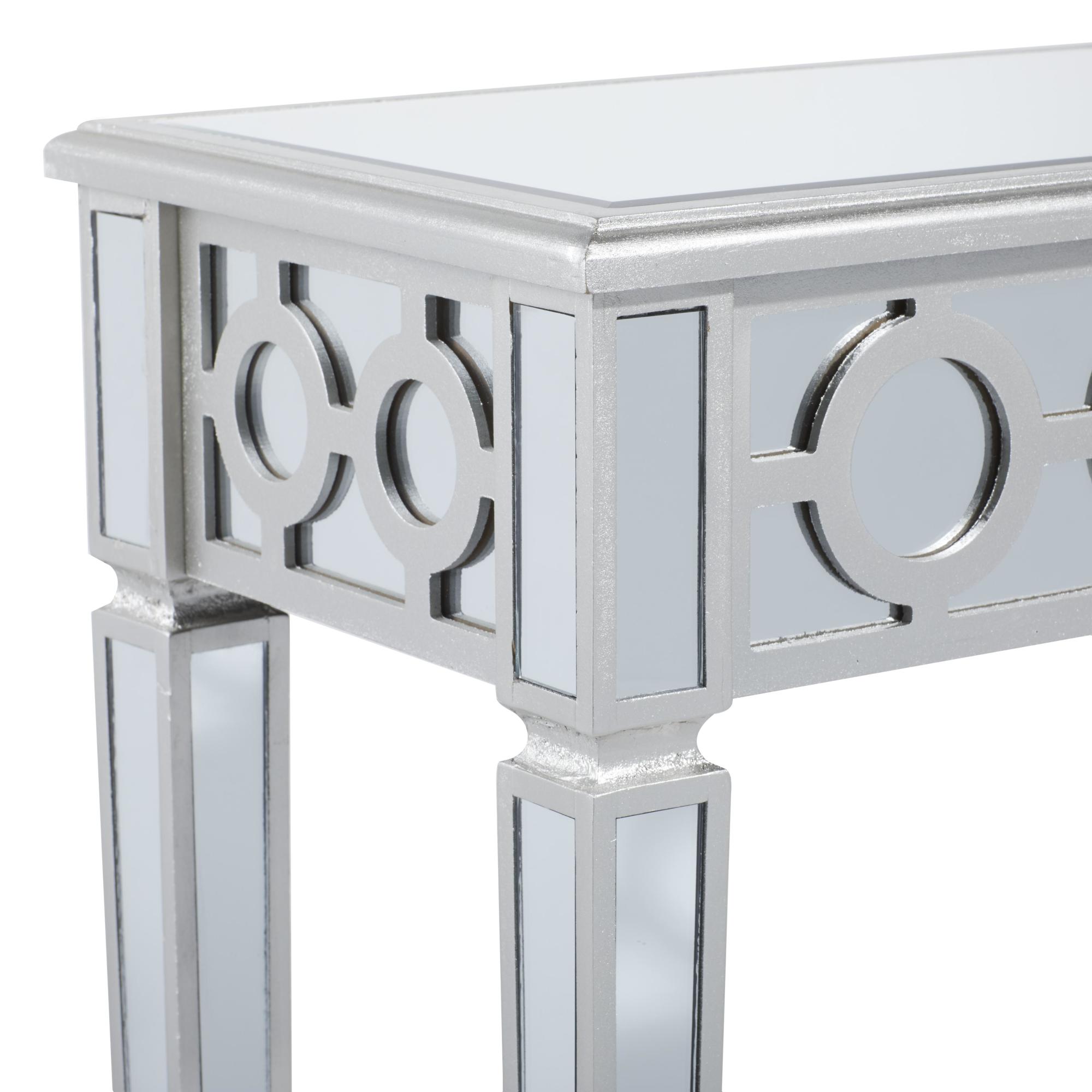 Geometric Silver Glass Mirrored Living Room Console Table with Circular Panel Inlay