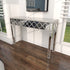 •The glam home console table features a carved wooden frame encased in expertly cut mirrored glass panels that exude luxurious elegance