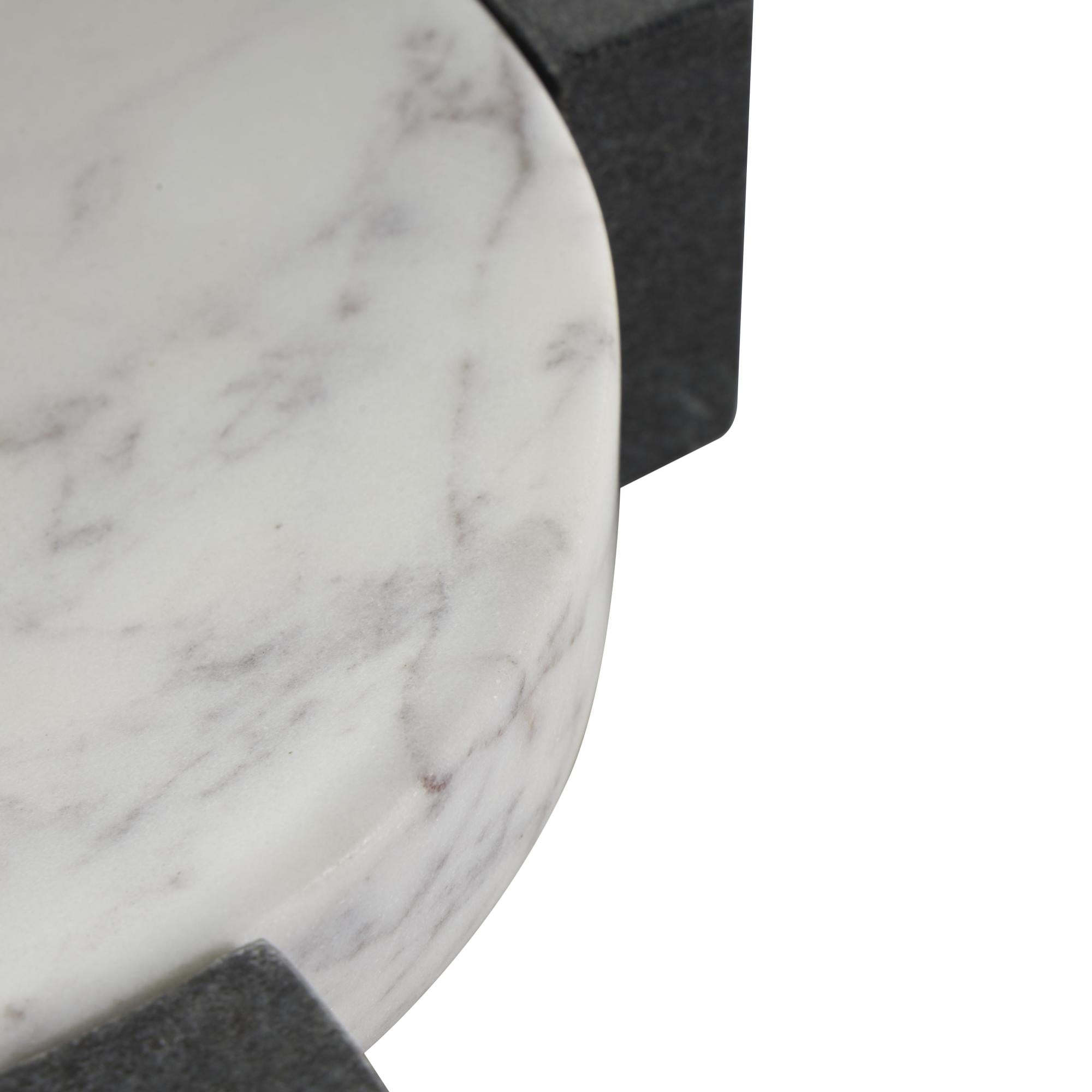 Geometric White Marble Round Living Room Decor Tray with Black X-Shaped Base