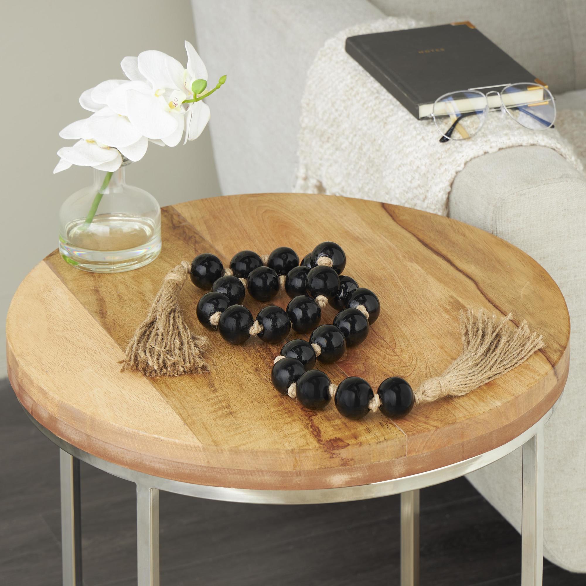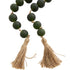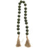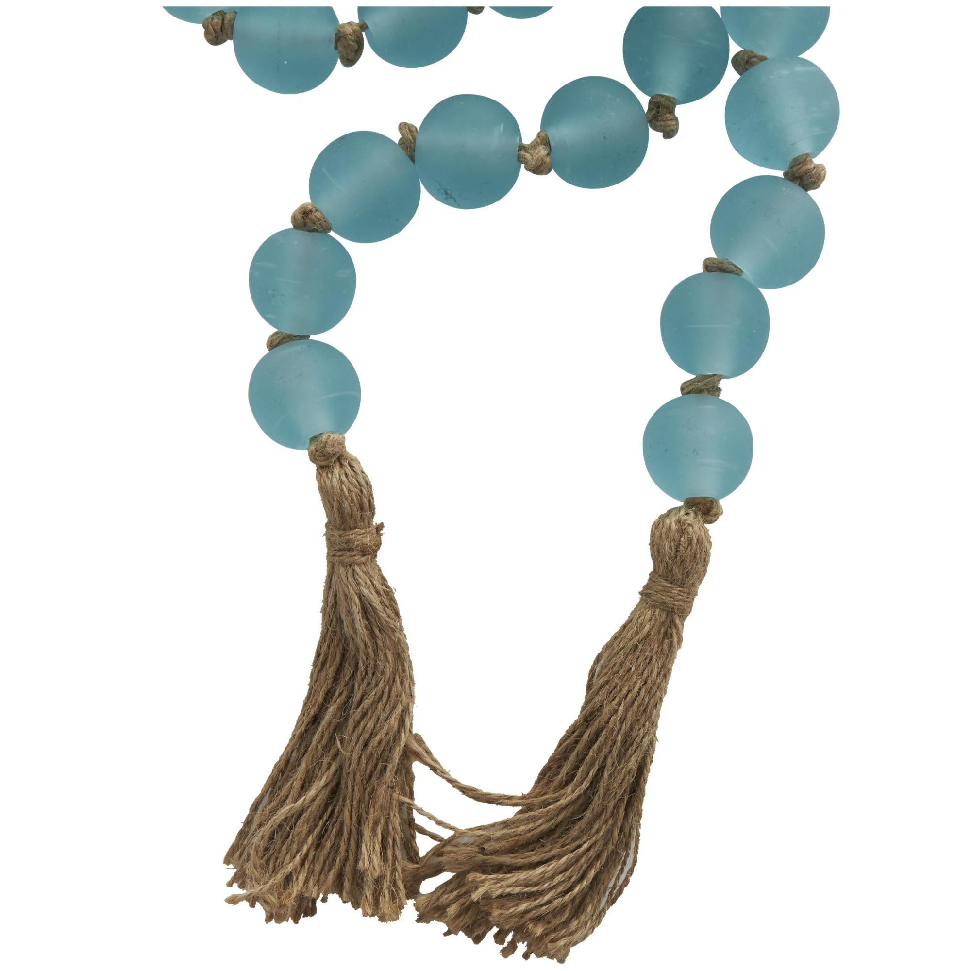 •The beaded garland with tassel is expertly crafted with glass and jute rope for an elegant and durable design