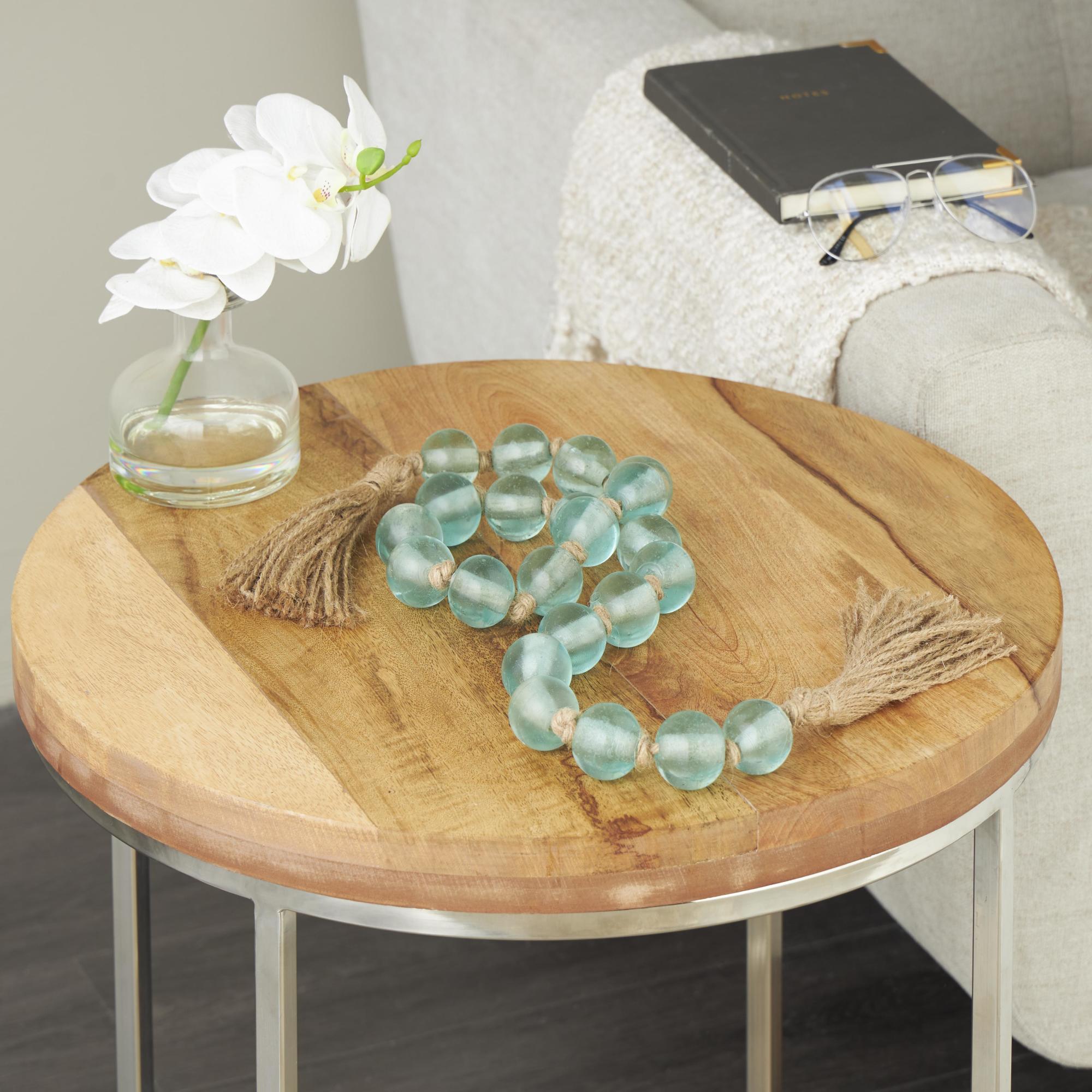 Glass Handmade Round Beaded Garland with Tassel with Knotted Brown Jute