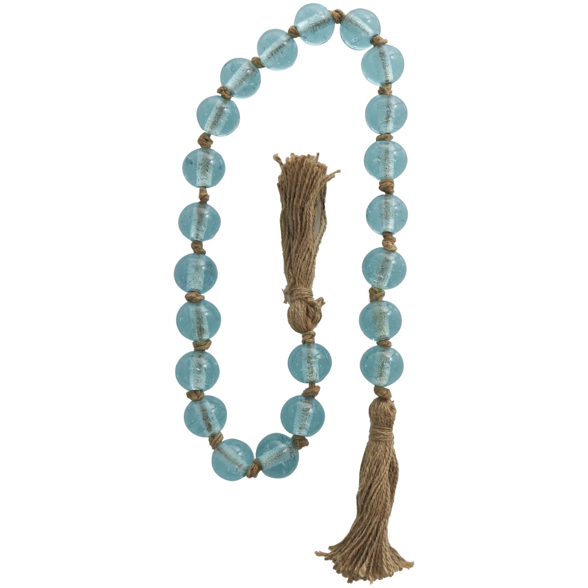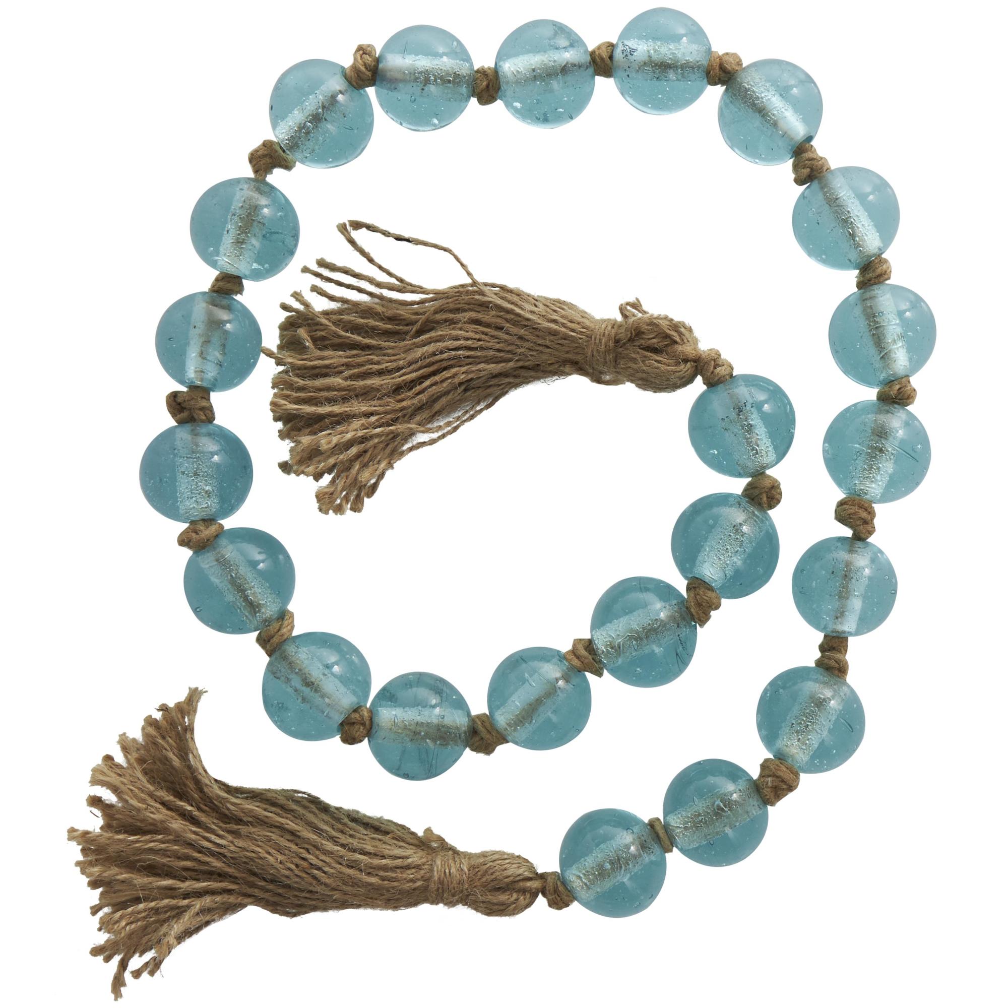 Style the small beads with tassel around a glass bottle vase or draped across a tray or books to create visual interest. This item ships in 1 carton. Glass garland with tassel makes a great gift for any occasion. Due to the handmade nature of this item, no two will be alike, there will be slight differences in shape, size, and color. Suitable for indoor use only. This item ships fully assembled in one piece. Made in India. This is a single large beads with tassel. Bohemian style.