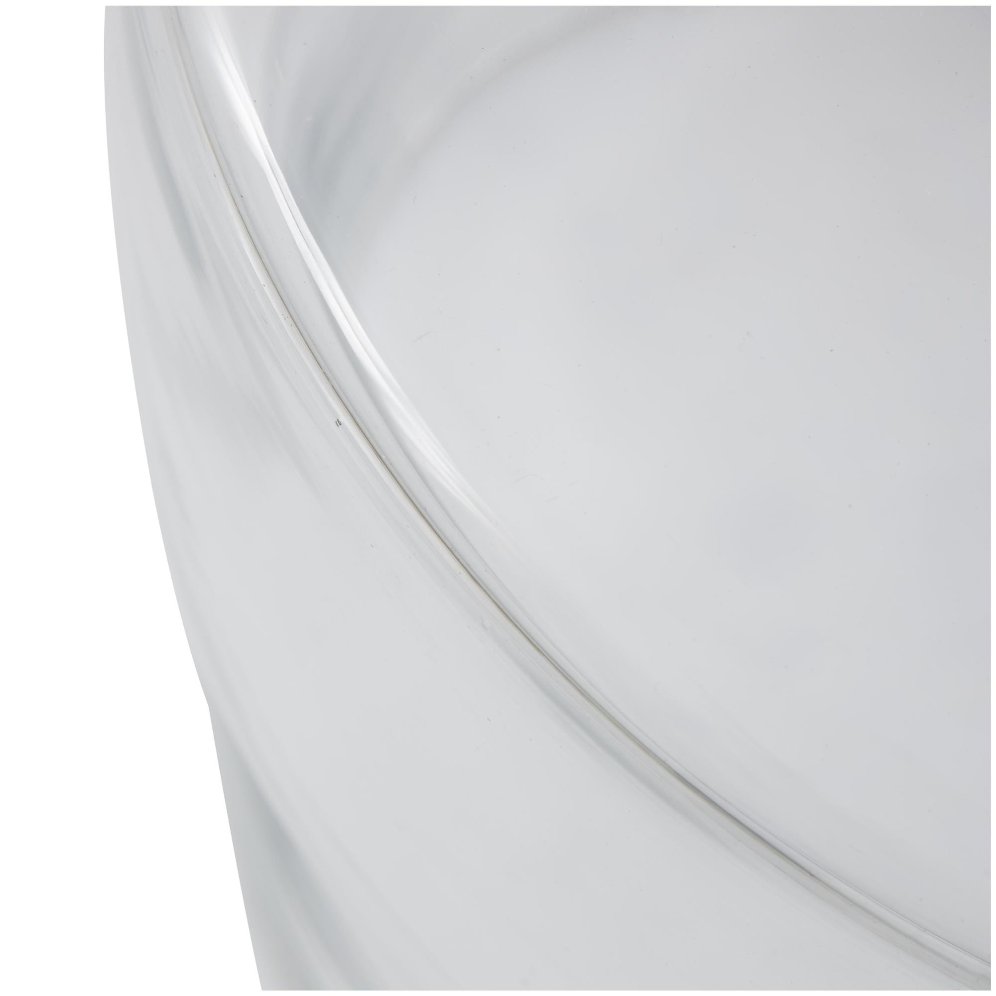 •The polished living room table is beautifully crafted featuring a thick rounded glass tabletop with a tapered base and hollow interior