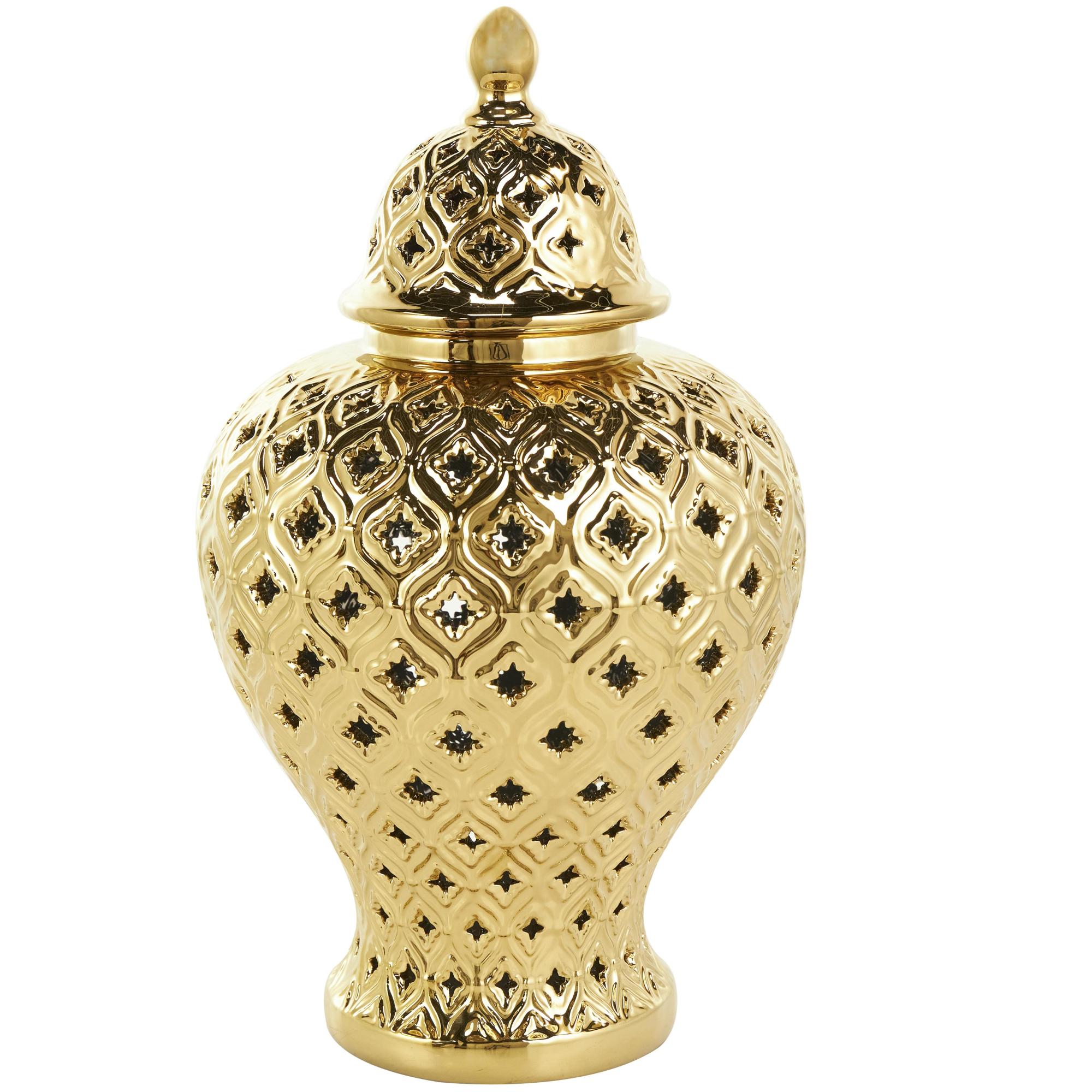 Gold Ceramic Living Room Decorative Jars with Geometric Cutout Design and Lid