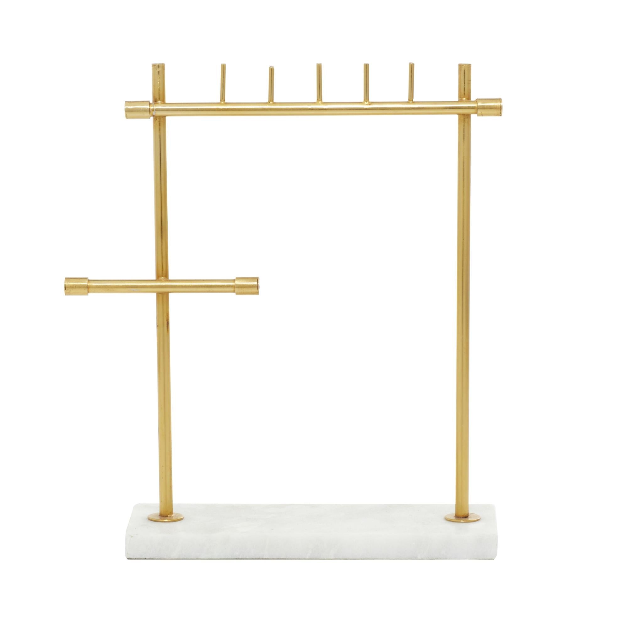 •Gold-finished stand to organize jewelry, Horizontal and vertical iron rods with a finish with marble base