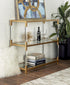•The metal console table features two shelves with surfaces to beautifully display decorative items or essentials