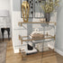 Gold Metal 2 Shelf Living Room Console Table with Clear Glass Top and Acrylic Legs