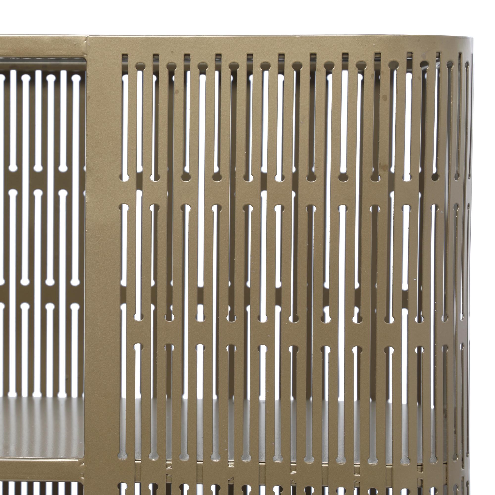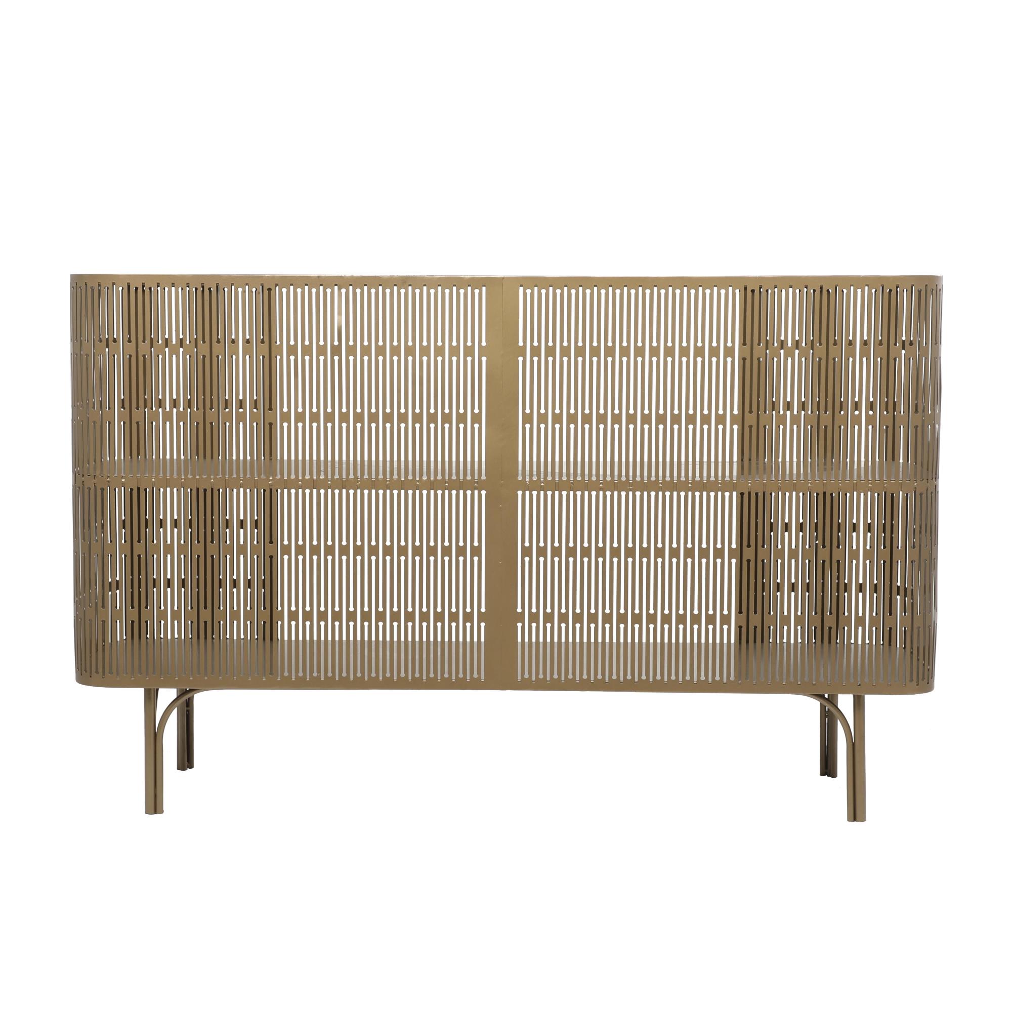 A practical yet stylish upgrade that instantly elevate the look of your room. Maintain a clutter free zone and stay organize with this chic cabinet. Place the table in an entryway or living room with a large wall mirror or dark abstract art for a sophisticated look. Includes one shelf that rests directly in the middle of the unit. This item ships in 1 carton. Suitable for indoor use only. This item ships fully assembled in one piece. Maximum weight limit is 150 lbs. This is a single entryway table. Metal console table features a single shelf. Modern style.