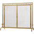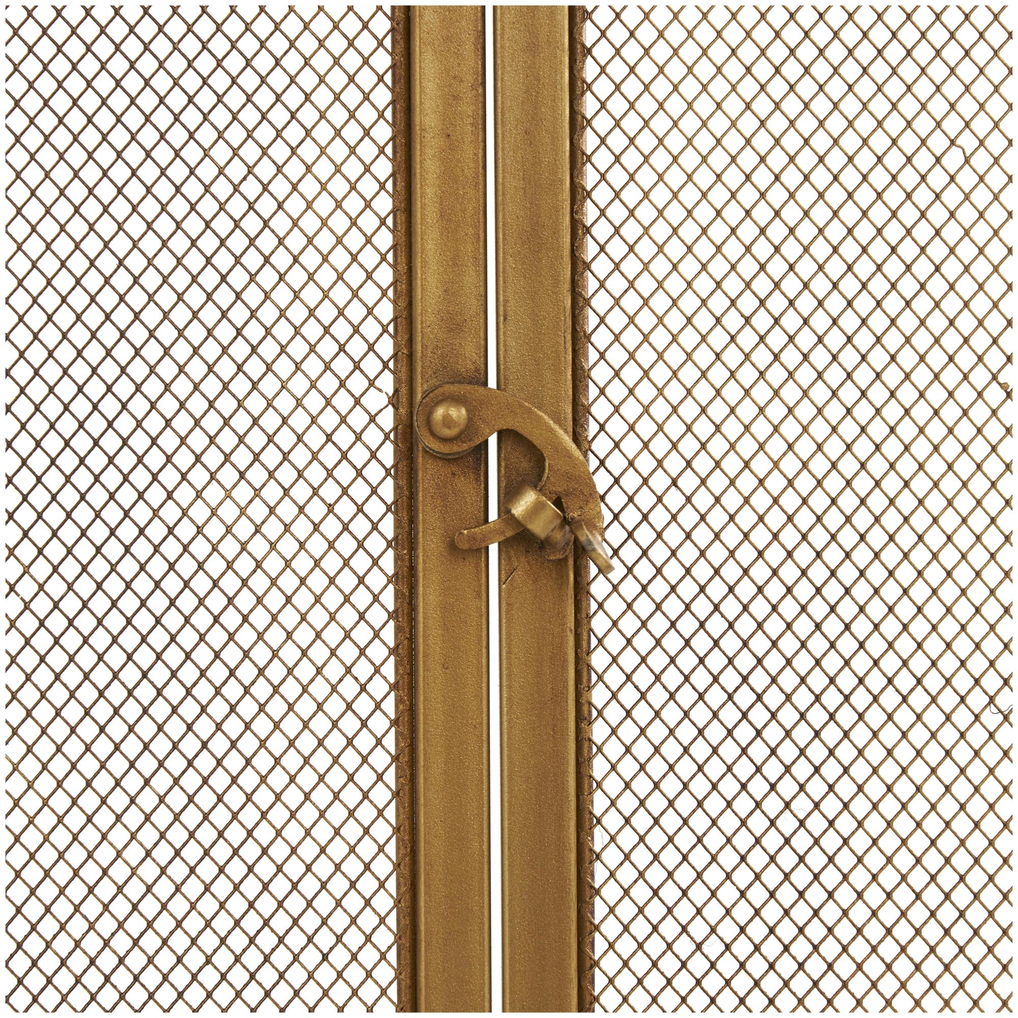 Gold Metal Geometric Single Panel Living Room Fireplace Screen with Latched Doors and Arched Feet