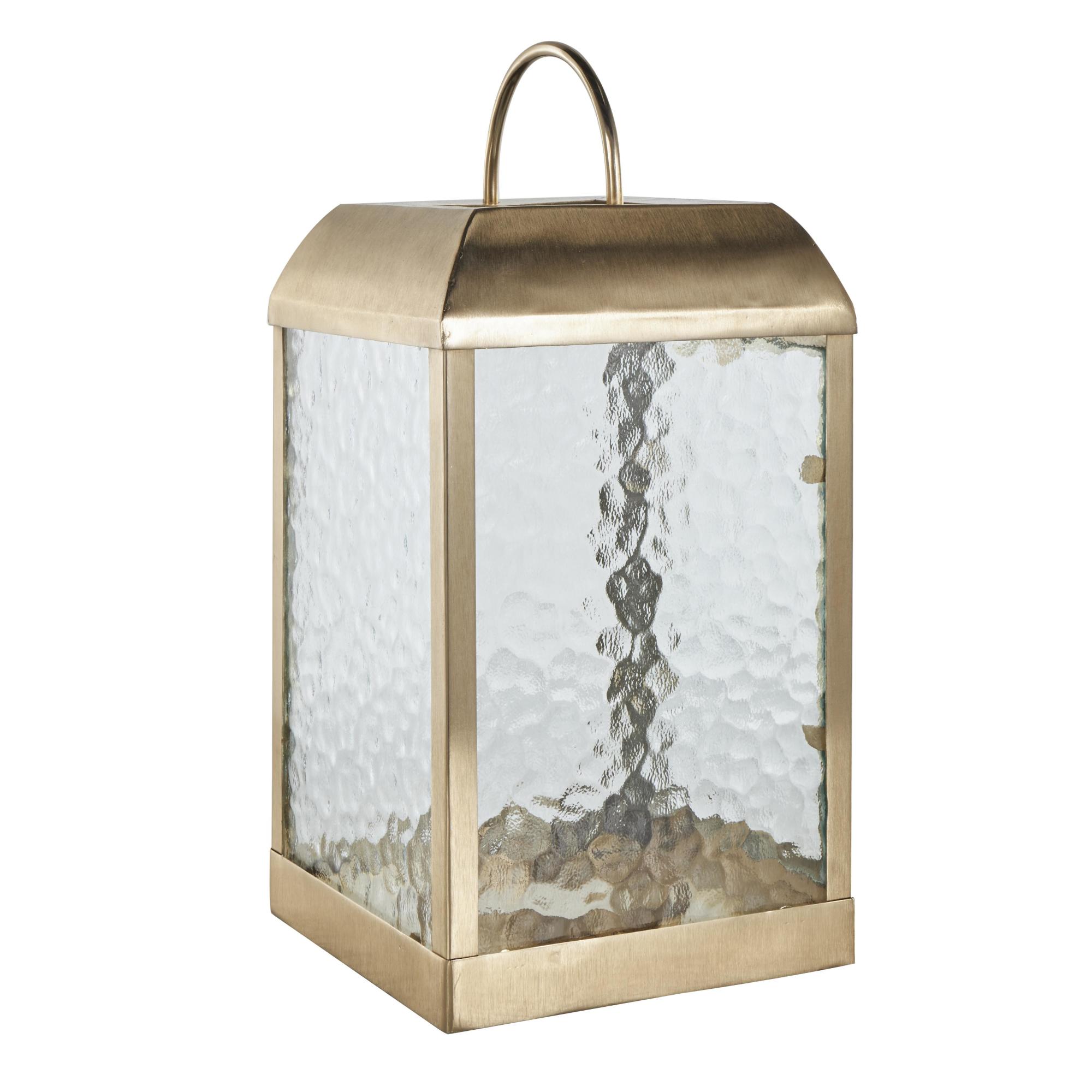Gold Metal Indoor Outdoor Candle Lantern with Pebbled Glass