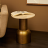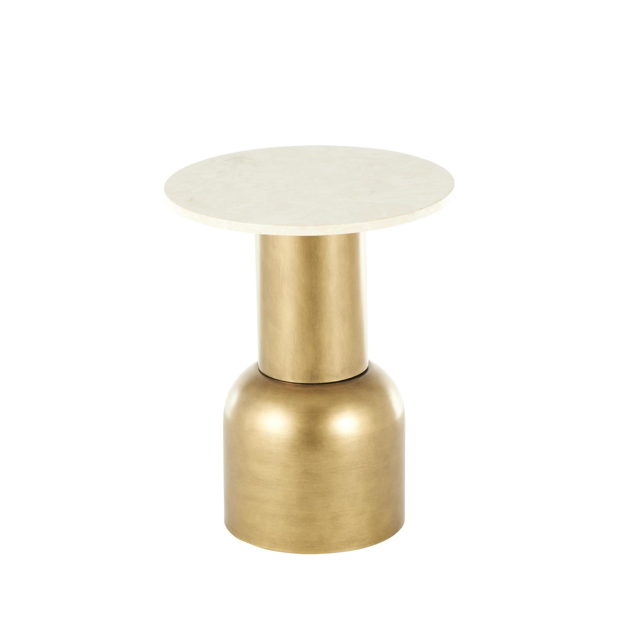 Gold Metal Pedestal Side End Accent Table with Cream Marble Tabletop