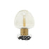 •This polished accent lamp for table offers a dome-shaped top, rounded-off corners, and a wide metal stem on a round base for intriguing silhouette