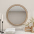 •The contemporary accent wall mirror is designed with sleek lines in the frame that encases a round glass for a borderless experience