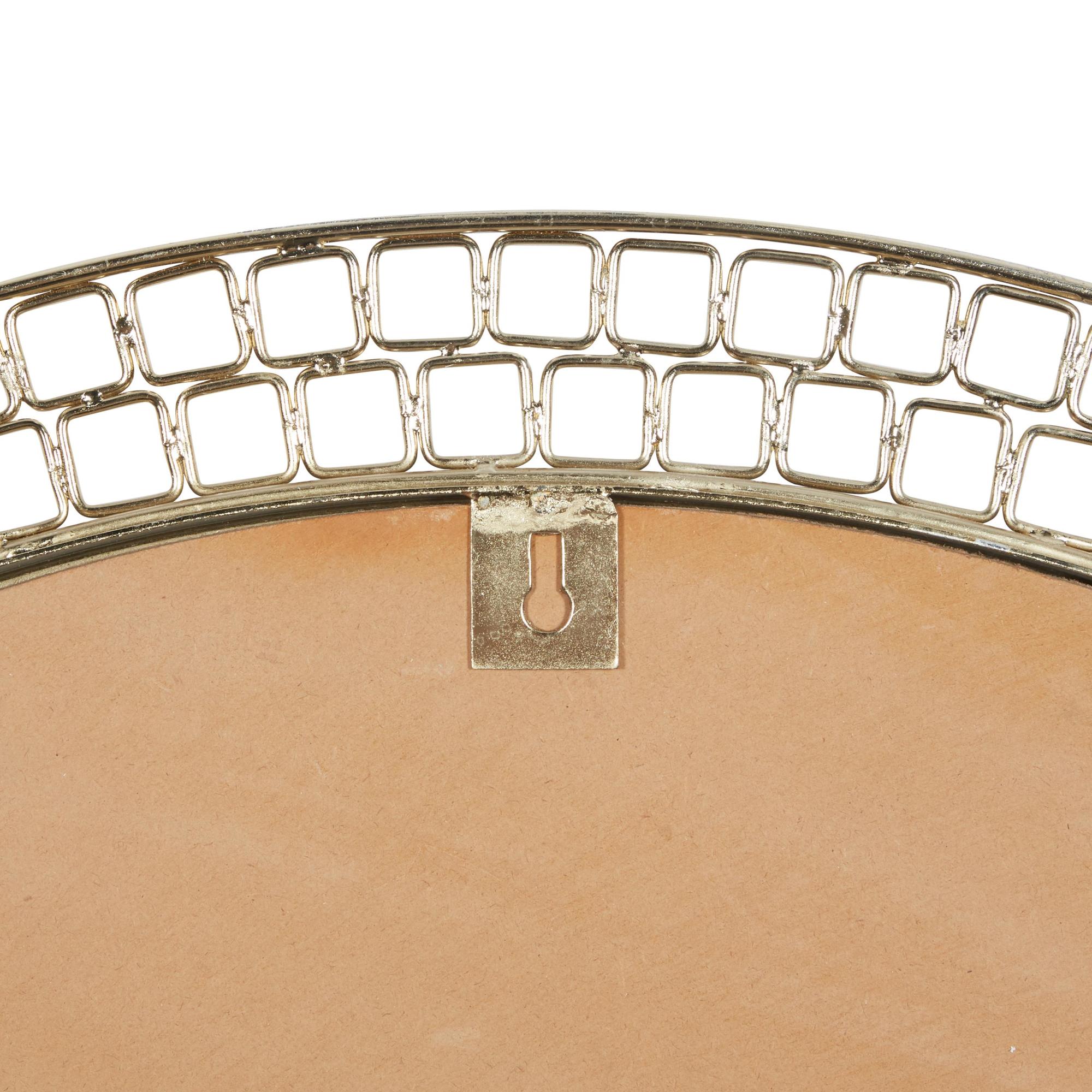 •The mirrored mirror for wall boasts a round design with small square pattern details on the border