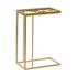 Bring a finishing touch to your home with an inviting appeal with this beautifully crafted accent table. A compact friendly table providing you with additional surface storage space any where in your home. Its modern C-shape design makes the end table an ideal focal point in any living room setting such as a living room or bedroom. This accent table has a completely finished back. This item ships in 1 carton. Suitable for indoor use only. This item ships fully assembled in one piece. Maximum weight limit is 100 lbs. Made in India. This is a single end table. Contemporary style.