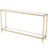 •This metal console table boasts a twisted rope-inspired design that adds artistic flair while providing structural support for the glass top and shelf