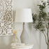 •The round fabric shade of this accent lamp is securely mounted on the ceramic body