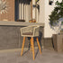 •The kitchen bar stool is crafted with aluminum, albizia wood, and woven rope with a polyester cushion for comfort