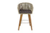 •The matte bar stool for kitchen showcases a rounded seat with intricate linear woven patterns atop elegantly tapered wood legs