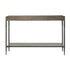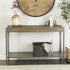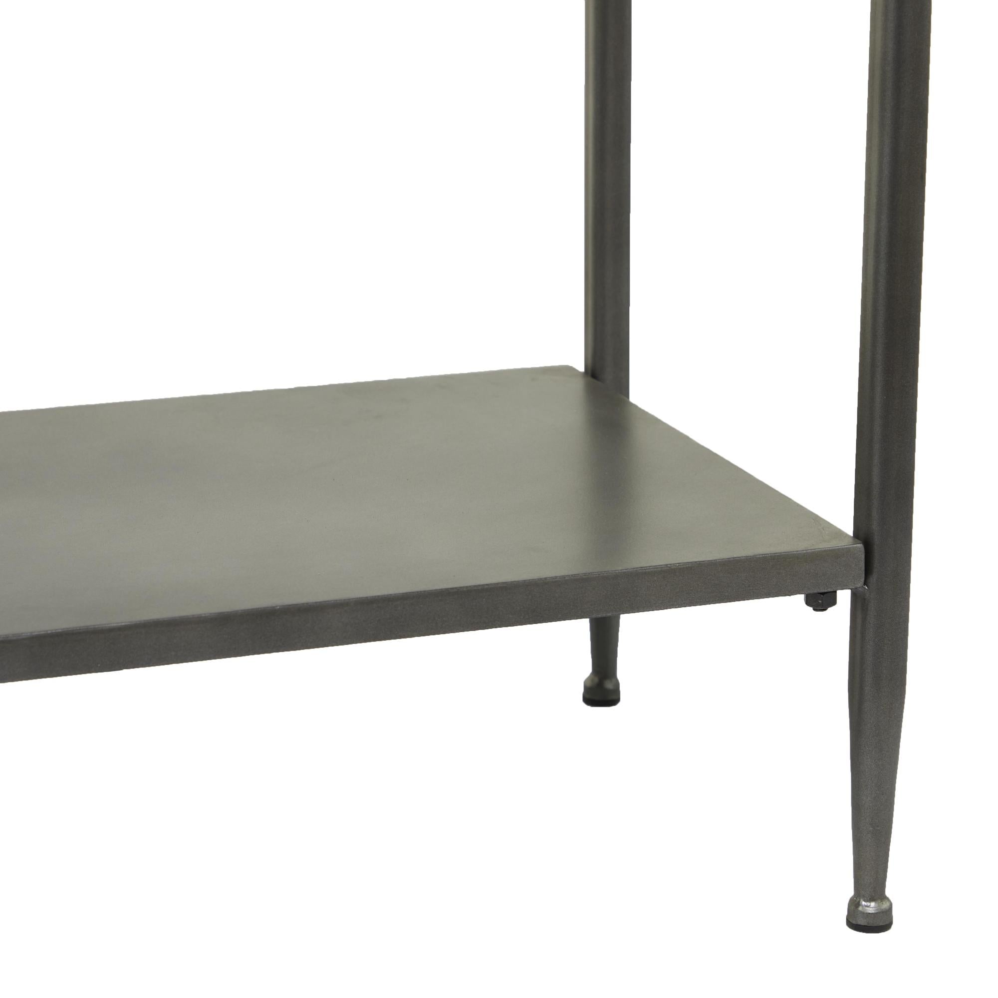 •The metal console table features a bottom shelf and spacious top, providing ample storage space for your belongings