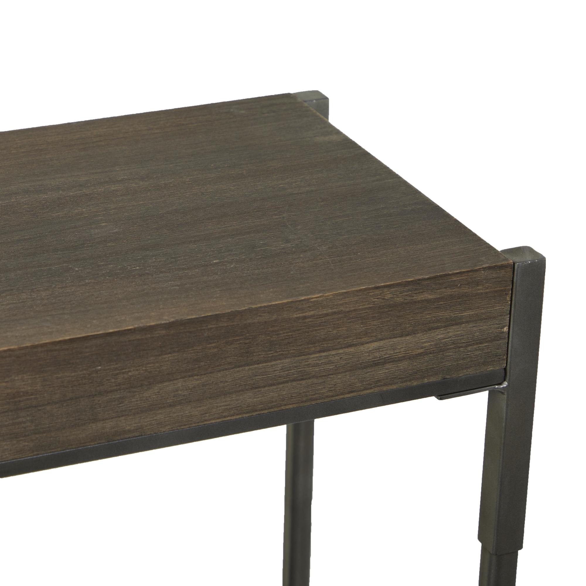 Gray Metal Shelf Living Room Console Table with Brown Wooden Top