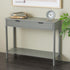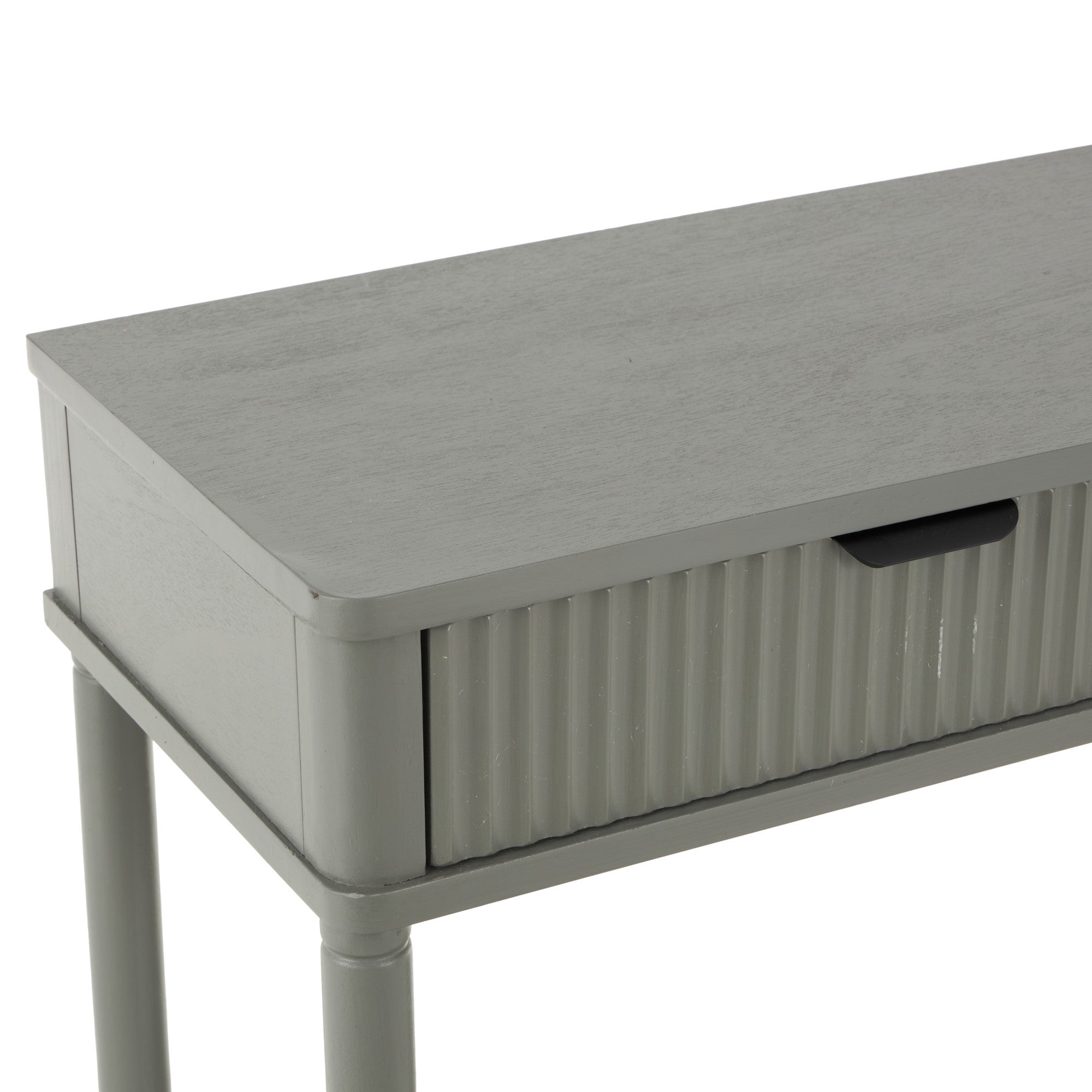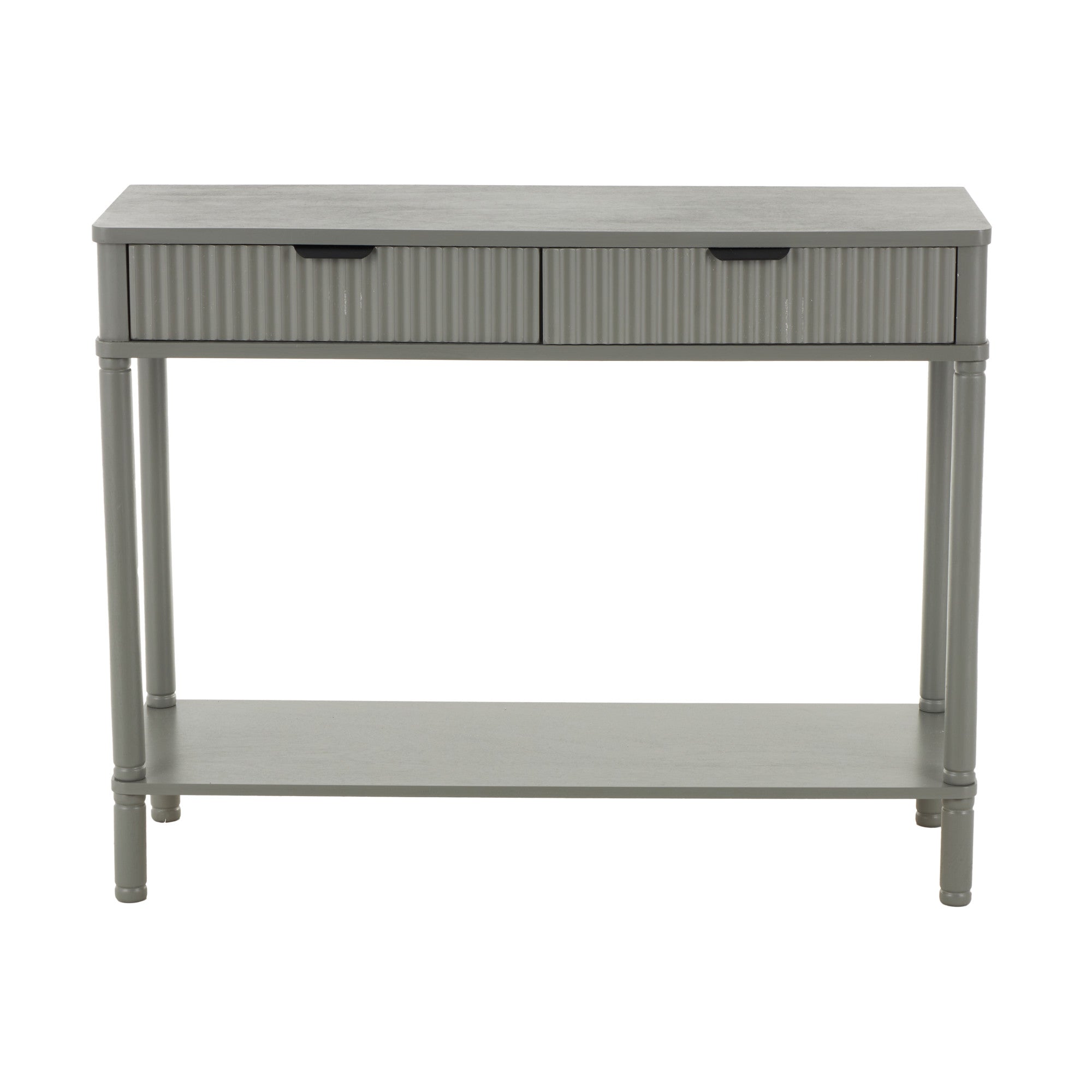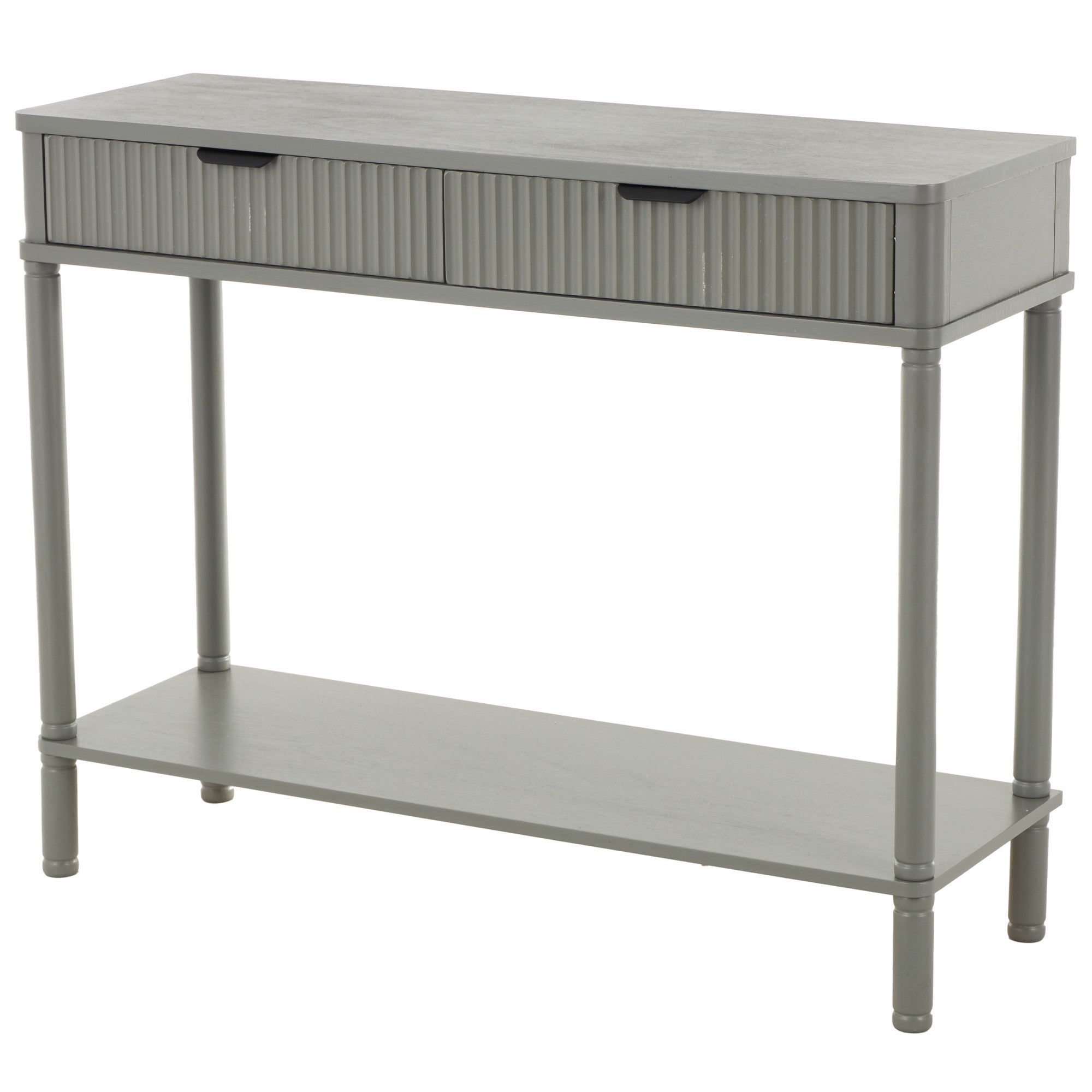 Gray Wood Handmade 2 Drawer Living Room Console Table with Black Handle and Ribbed Front