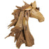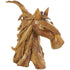 •Large horse head shape made of smaller pieces of wood features a natural wood gradient pattern on this varnished home decor figurine