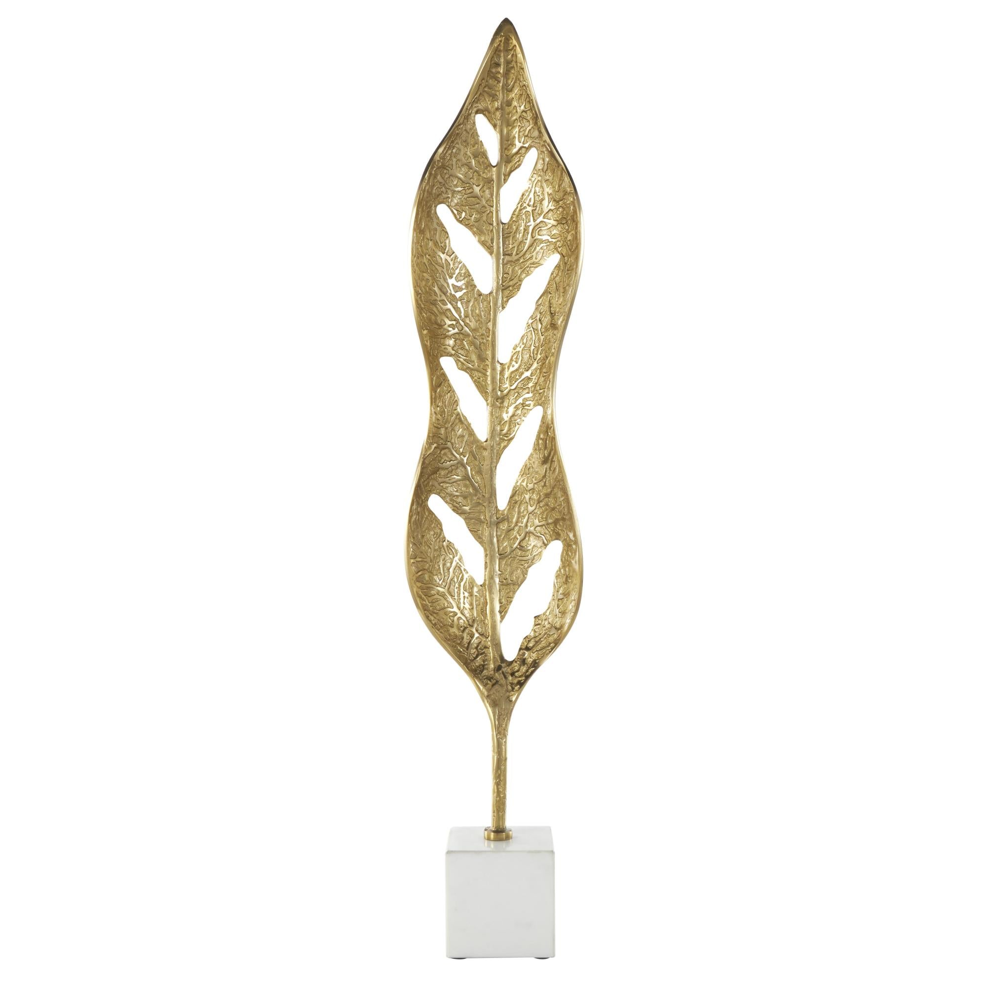 Leaf Gold Aluminum Metal Tall Textured Cutout Decorative Sculpture with White Marble Base