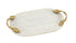 Leaf Marble Oval Living Room Decor Tray with Gold Twisted Metal Handles