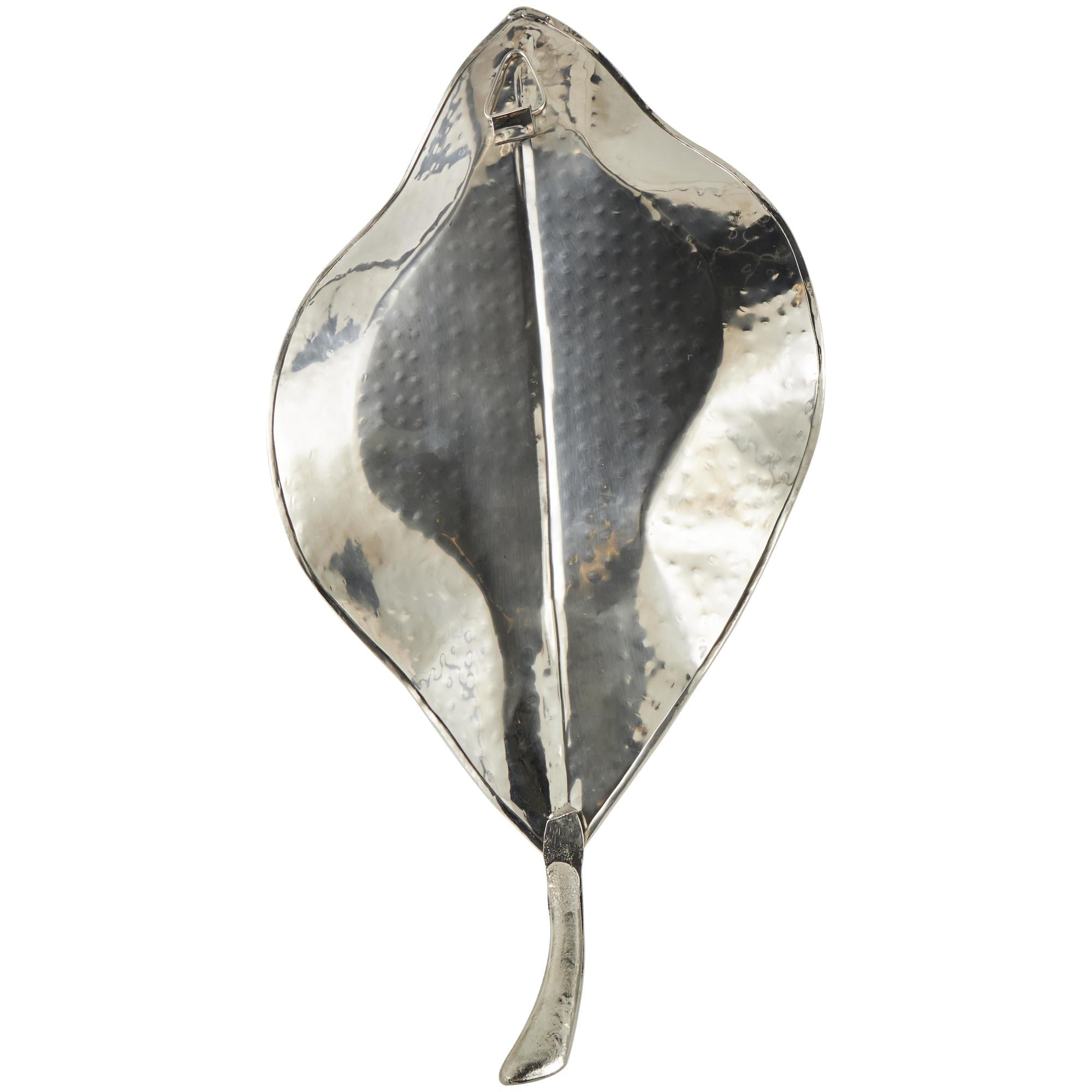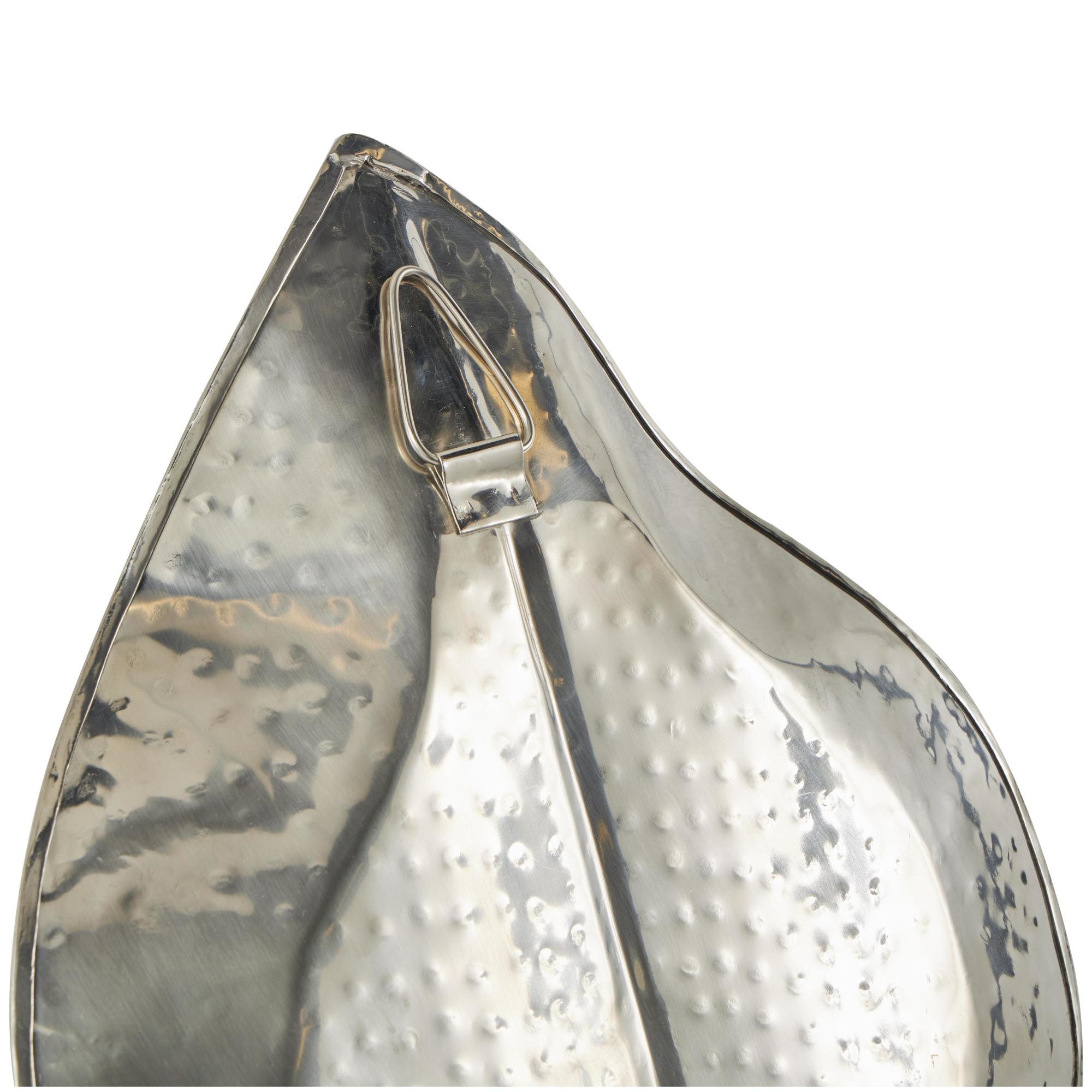Leaf Silver Stainless Steel Metal Slim Single Candle Indoor Outdoor Wall Sconce with Hammered Design