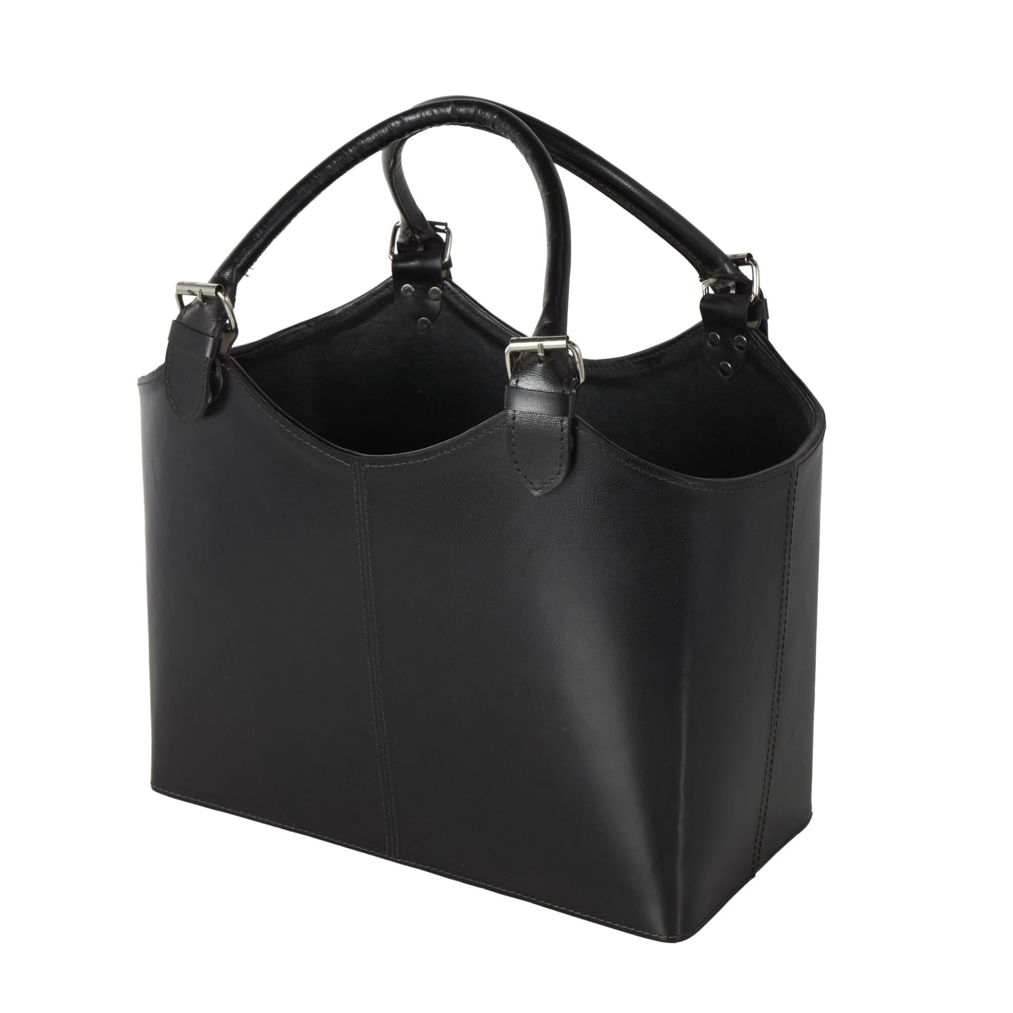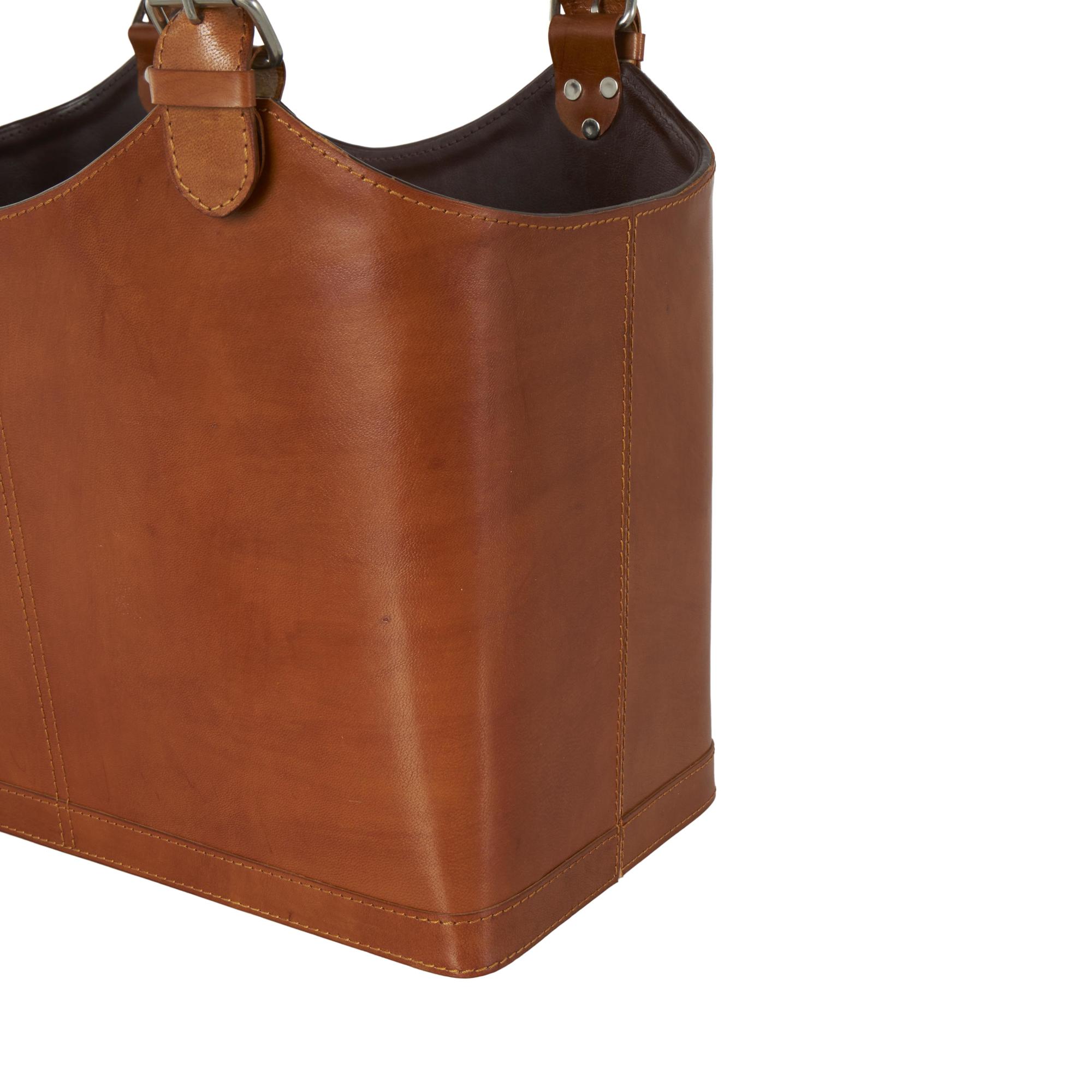 •The leather magazine holder includes exquisite, detailed stitching and elegantly curved buckle handles