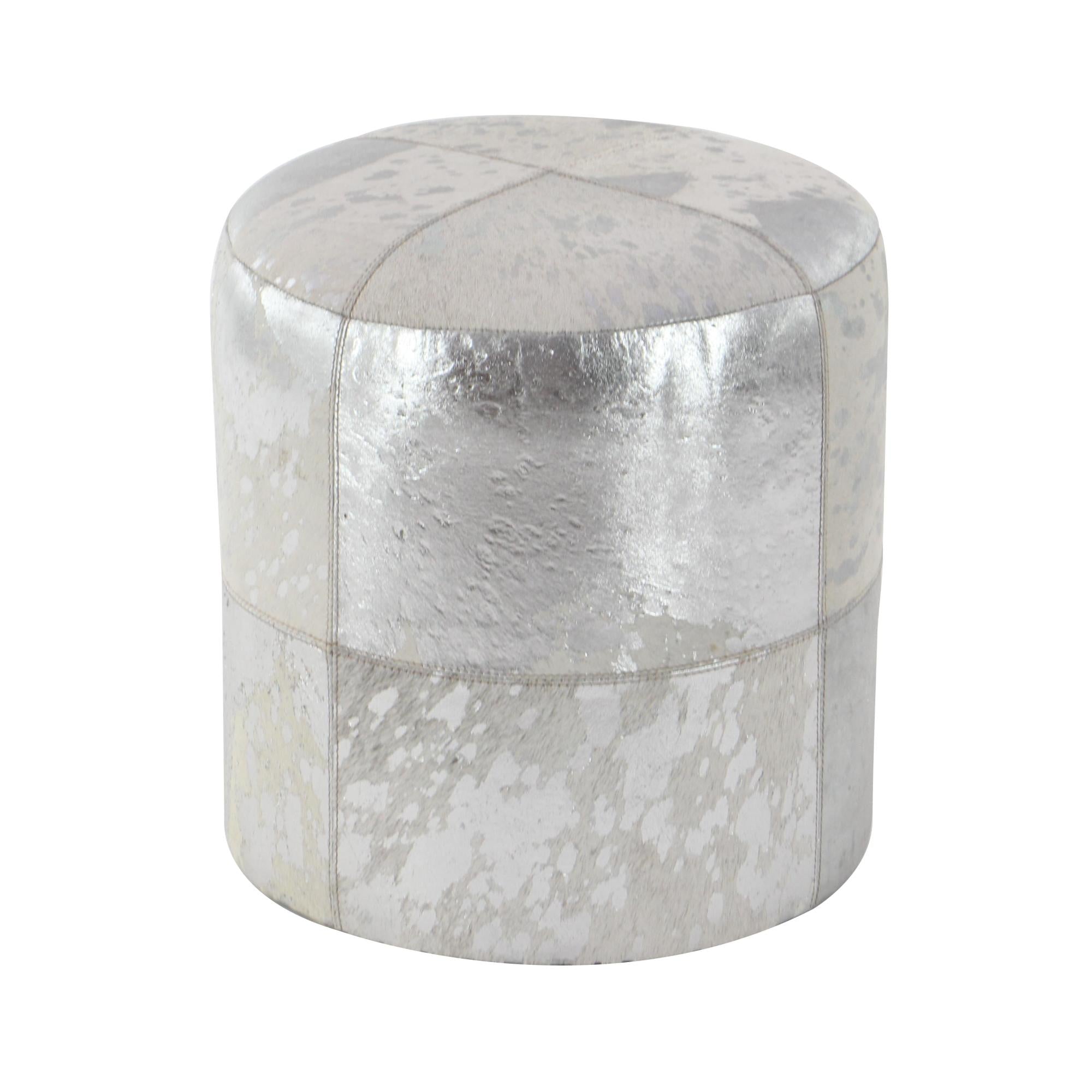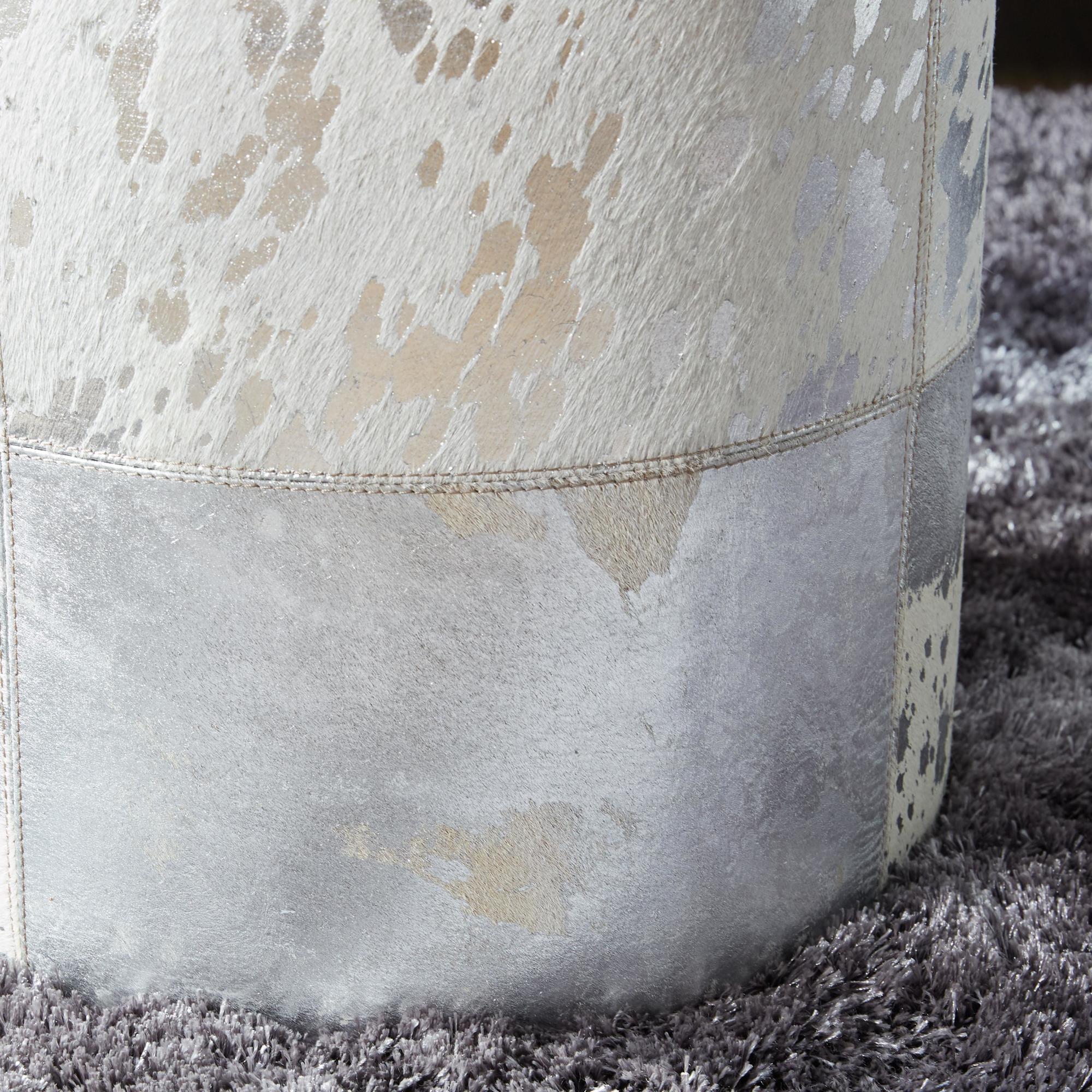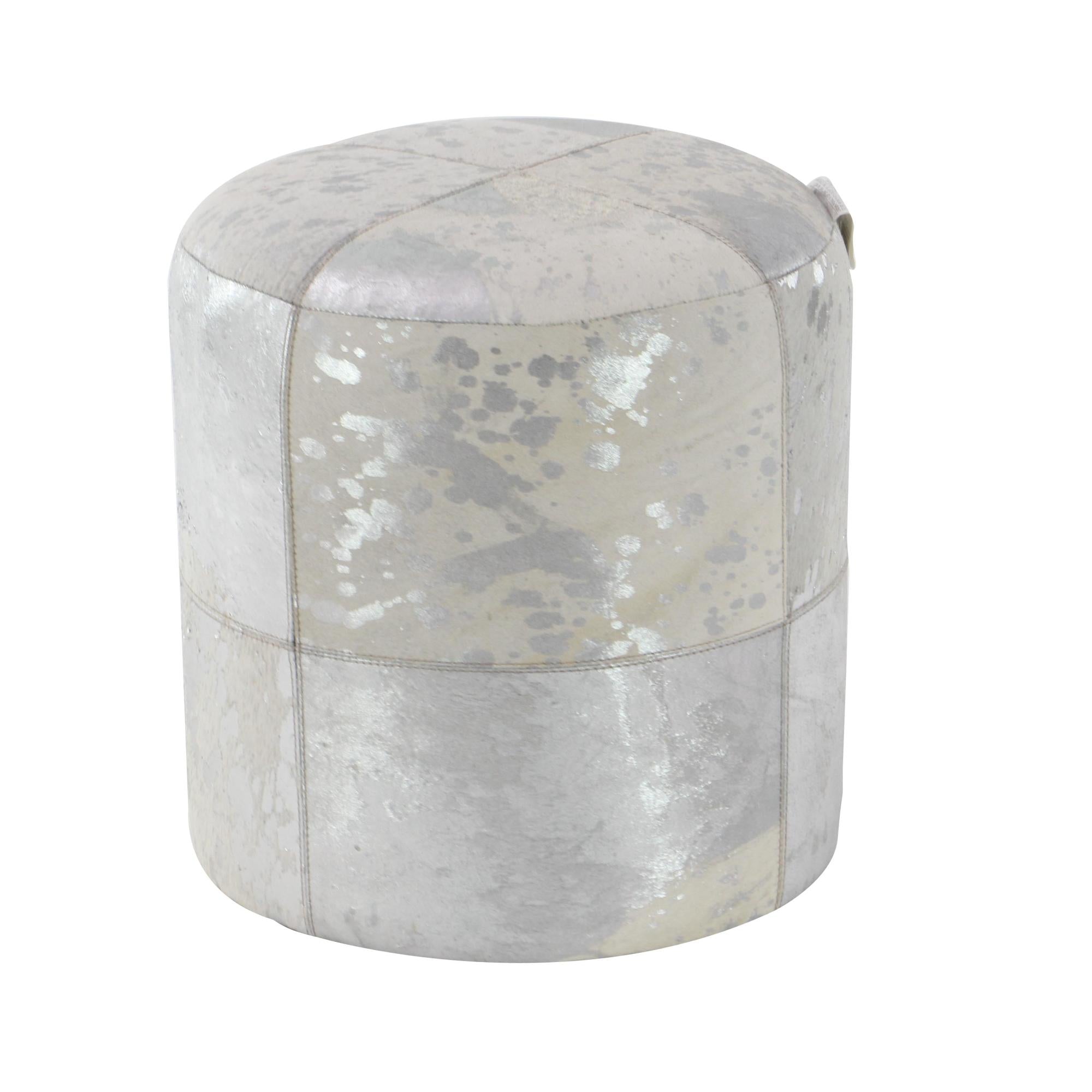 Sit back and relax with your feet rested on this comfortable stool. The perfect combination of form and function with a stylish design. The ottoman will complement an upholstered velvet sofa with light-colored pillows for a luxurious appeal. This item ships in 1 carton. Due to the handmade nature of this item, no two will be alike, there will be slight differences in shape, size, and color. Suitable for indoor use only. This item ships fully assembled in one piece. Leather and hair on hide are natural products, and therefore no two will be alike. There may slight variations in pattern, natural blemishes, colors, and overall aesthetic of the product. Maximum weight limit is 250 lbs. Made in India. This is a single ottoman. Contemporary style.