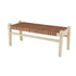 Leather Handmade Woven Seat Home Bench with Beige Wood Base