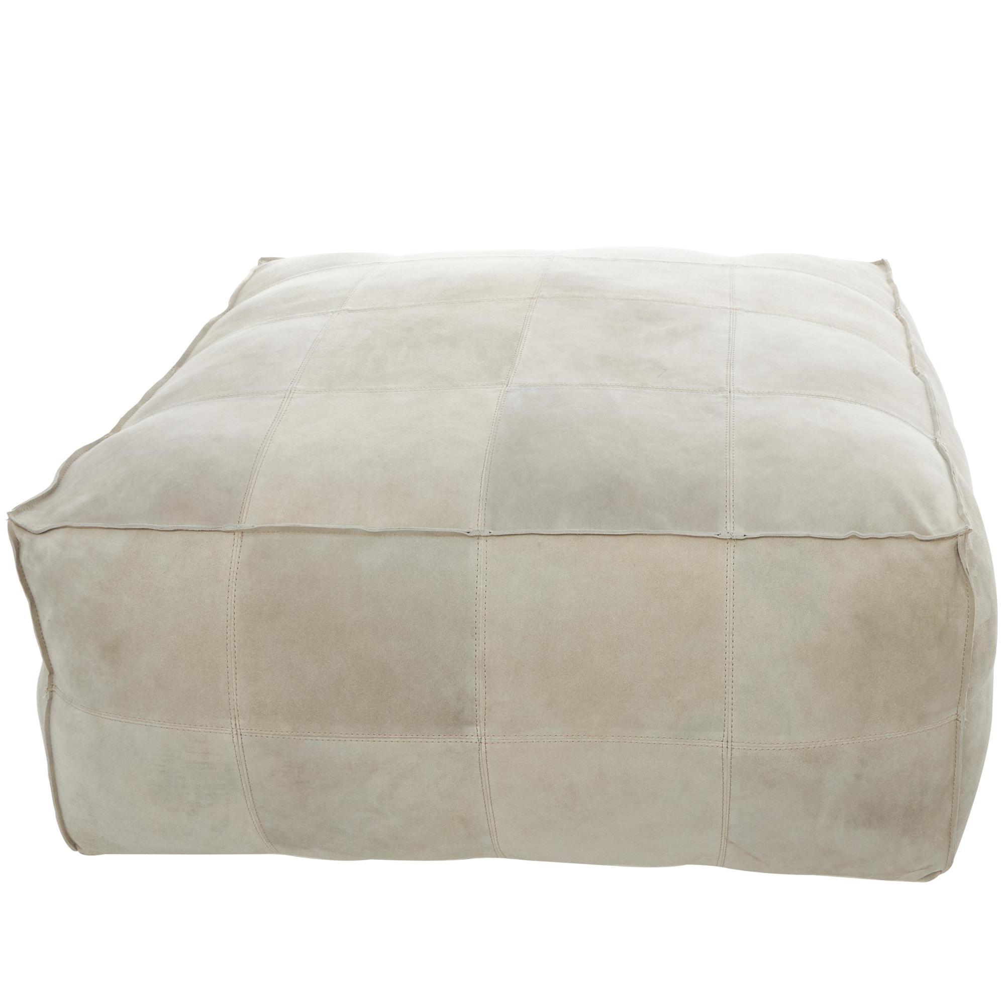 Leather Low Profile Square Stuffed Pouf with Patchwork Design