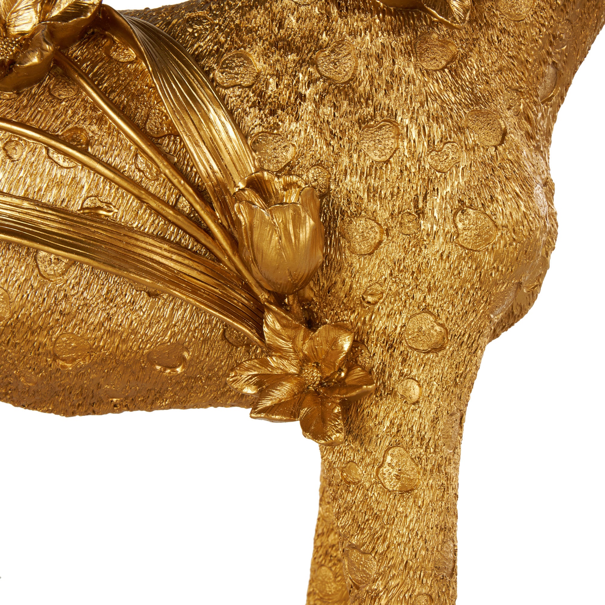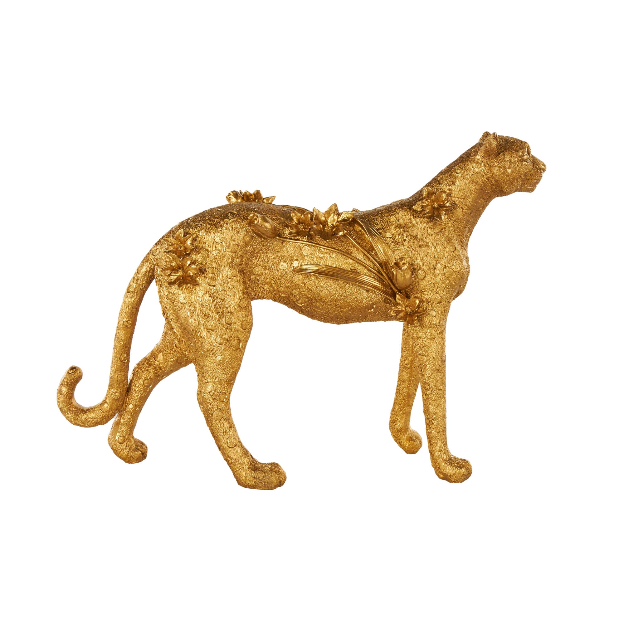 Leopard Gold Resin Standing Decorative Sculpture with Textured Spots and Floral Accents