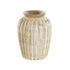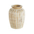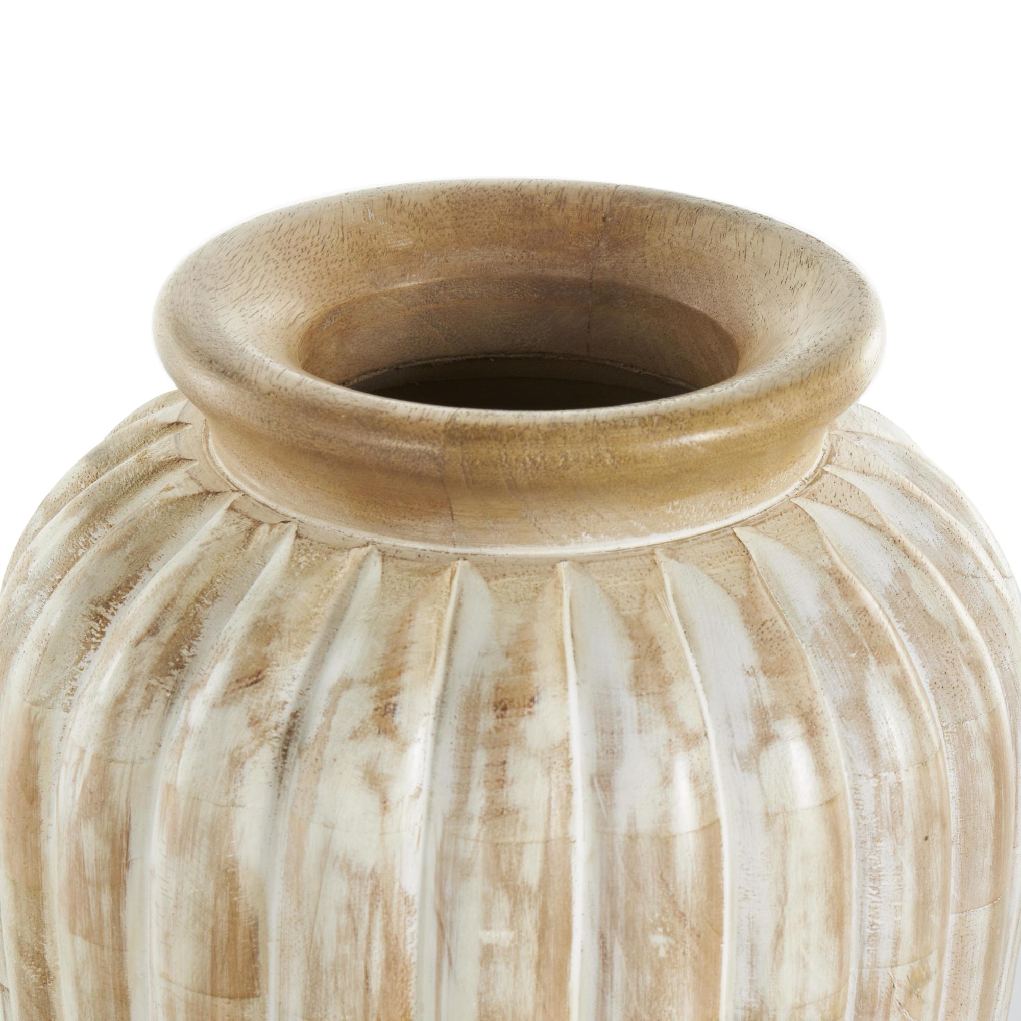 Light Brown Mango Wood Distressed Decorative Vase with Carved Ridges