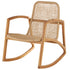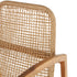 •This contemporary small space accent chair, designed for small spaces, features an elegantly carved teak wood frame that is beautifully wrapped in natural rattan, adding a touch of sophistication and warmth to any room