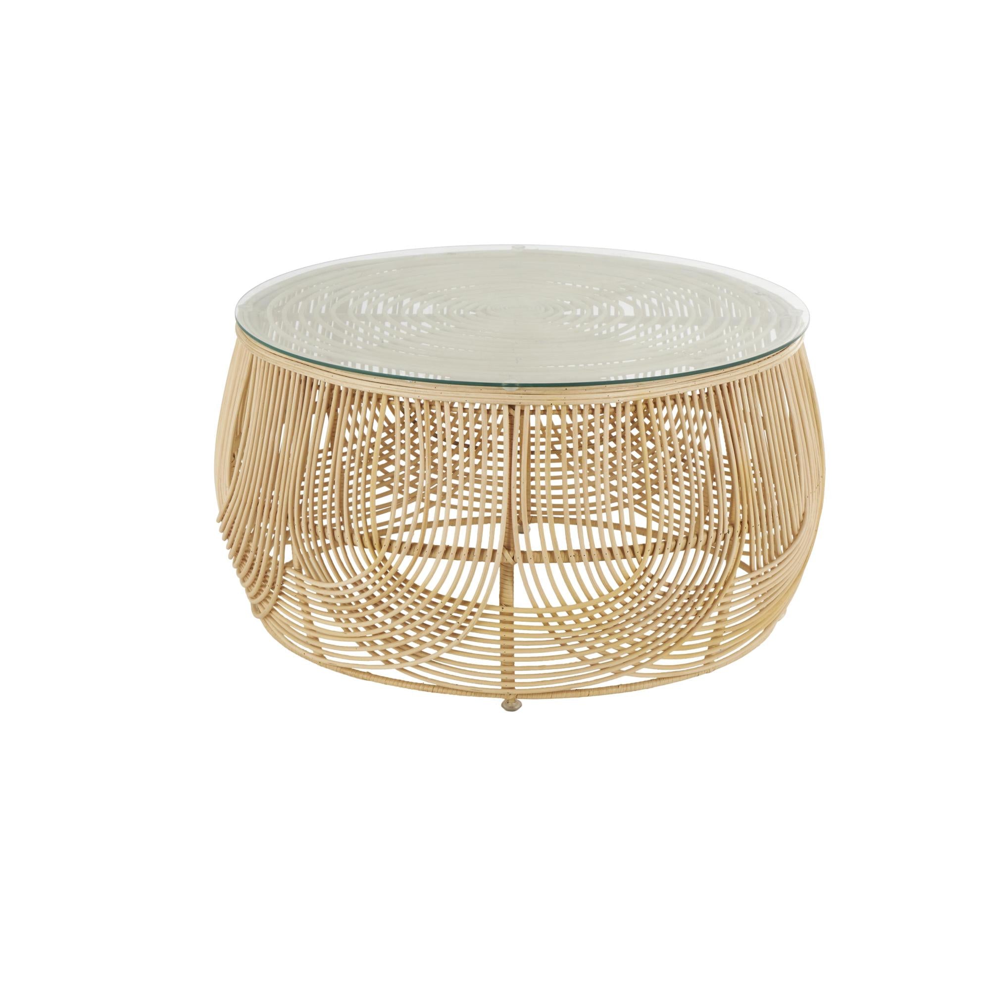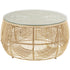 Light Brown Rattan Living Room Coffee Table with Glass Top
